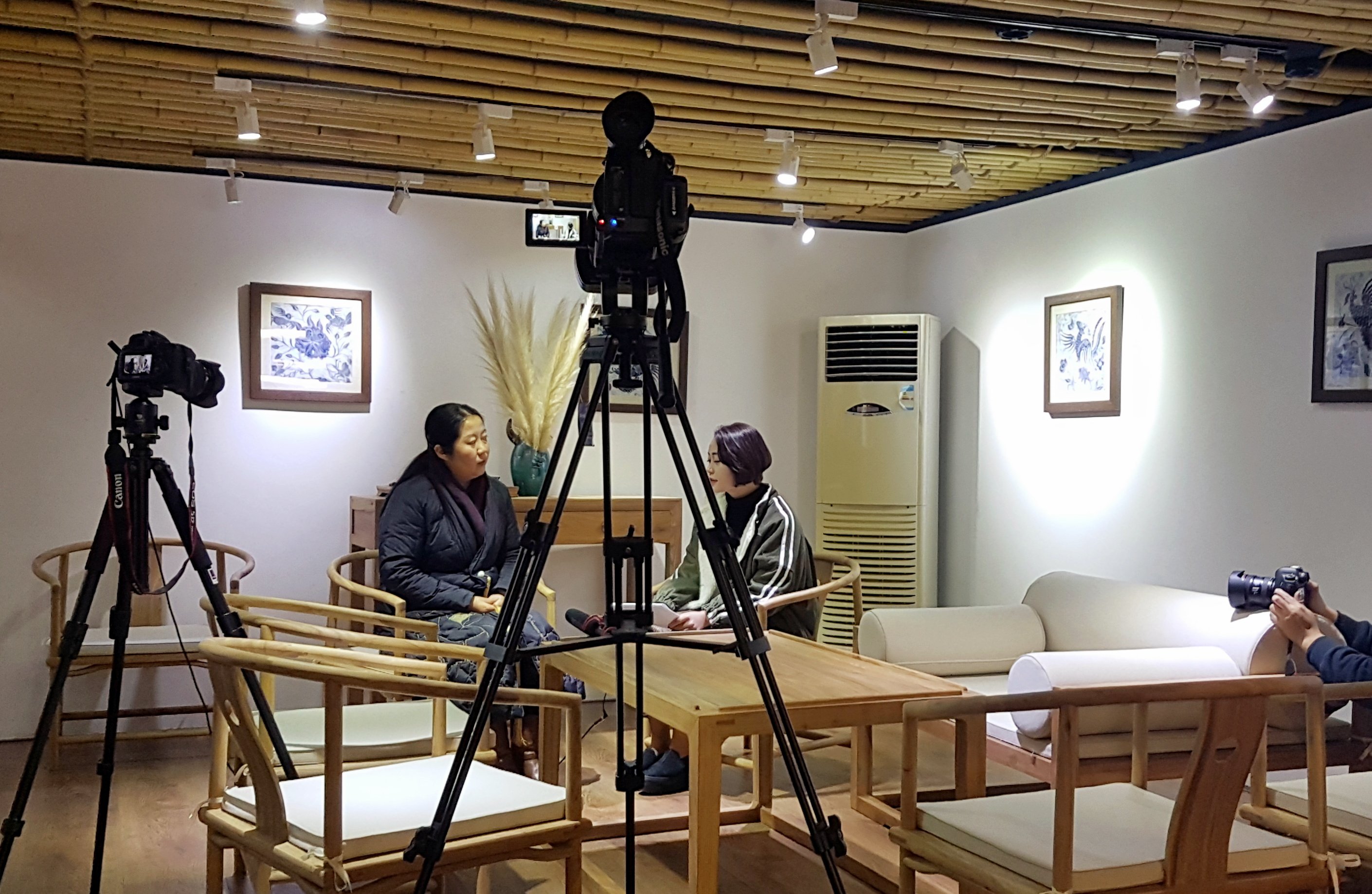 会后张老师与黔粹行的车红经理接受了艺术设计系心视觉工作室同学的采访。艺术设计系希望通过本次讲座为贵州民族文创产品创新研发,以及民族民间工艺品行业培养、储备人才。