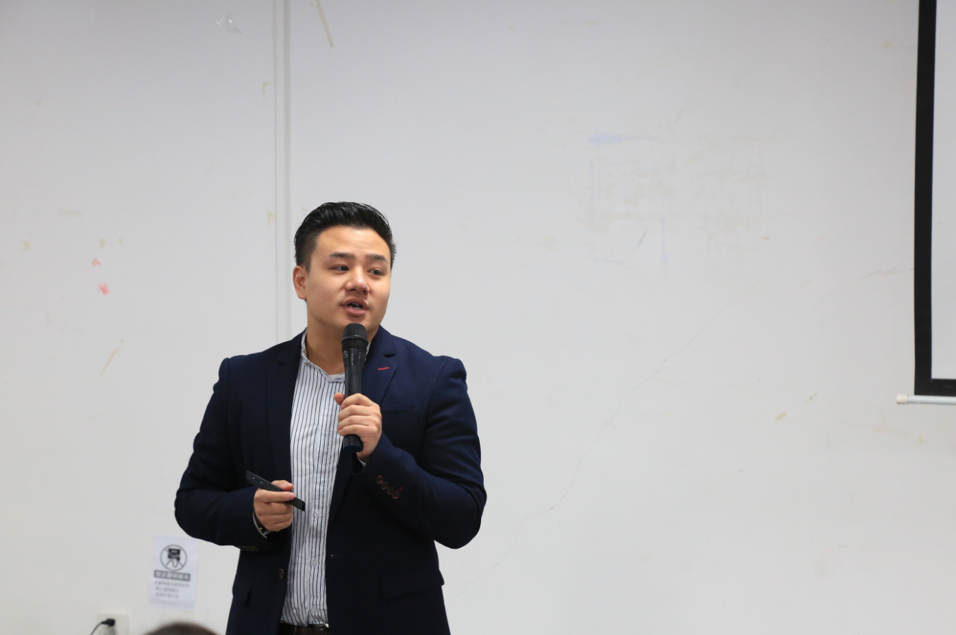分享主题为“通向职场王者之路”。他以职场的真实模样和制定科学的职业目标为题进行分享,讲述了大学生在职业规划中的一些问题。并以“职业成就环”和“车日路”模型进行了生动的讲解。