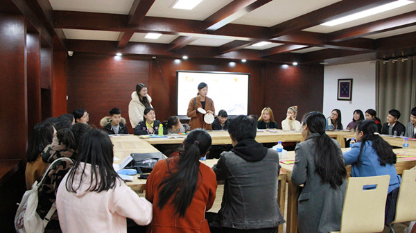 2017年11月29日晚上7点,由贵州轻工职业技术学院团委、艺术设计系团总支主办,艺术设计系17级工艺美术品设计班承办的“感恩奋进——青春建功新时代”主题团日活动在艺术系民族技艺传承中心举办。本次活动特邀省团委学校部部长聂蔚玲、院团委书记暨星球参与指导。