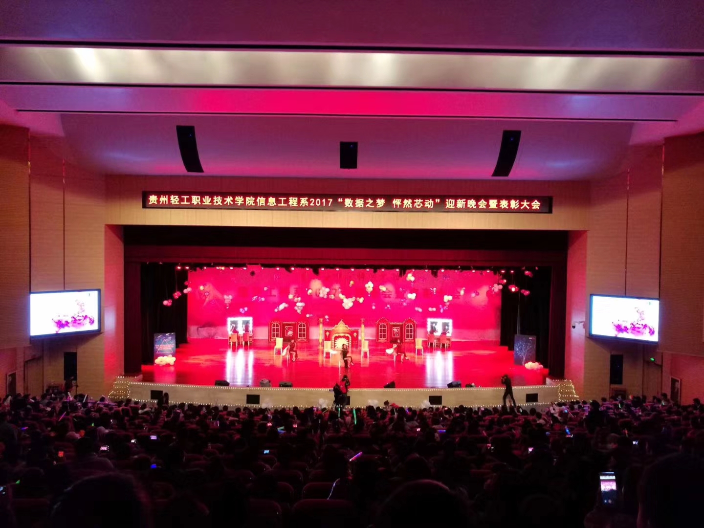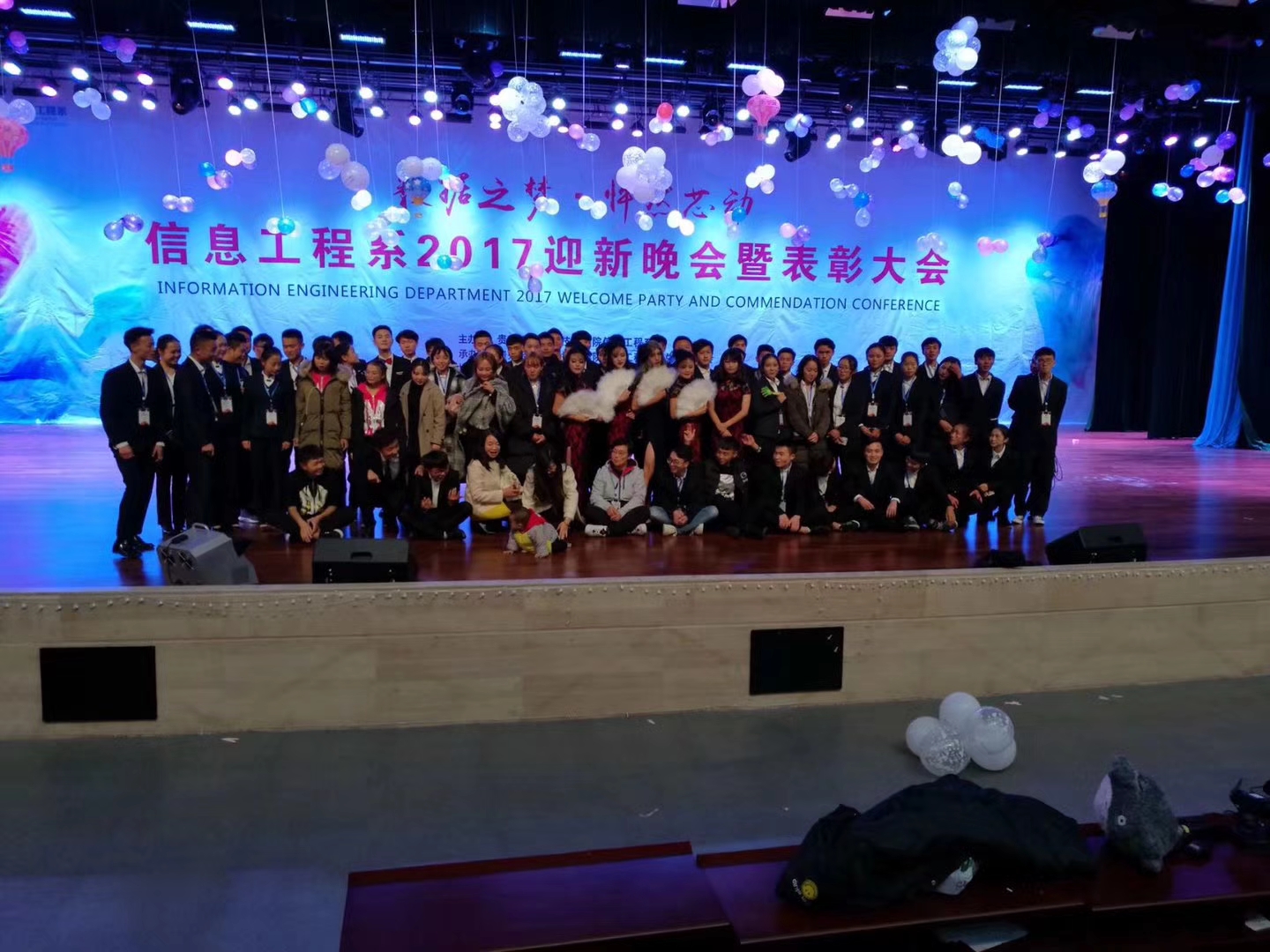 11月30日晚,“数据之梦 怦然心动”信息工程系2017迎新晚会暨表彰大会在学院大礼堂拉开帷幕。莅临本次晚会的领导及嘉宾有学院保卫处处长蒋明元老师、轻工化工系党总支书记余寒老师、人文社科系党总支书记常明老师、艺术设计系党总支书记田景烈老师、经济管理系党总支副书记梁鹏飞老师、学院保卫处副处长张志老师、各系团总支书记及辅导员和我系全体坐班人员及班主任。