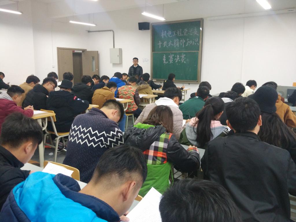 为深入学习宣传贯彻党的十九大精神,机电工程系党总支于2017年12月4日下午在5411教室开展了主题为“走进新时代 开启新征程”学习宣传贯彻党的十九大精神知识竞赛。