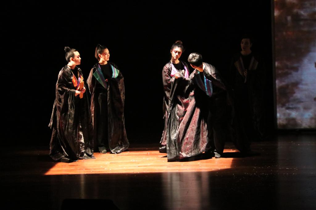 “吾十有五而至于学,三十而立,四十而不惑,五十而知天命。”这一《论语》经典语句是贯穿于整个话剧的灵魂。整台话剧通过不同的经典故事分为三个阶段。