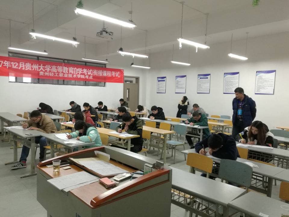 2017年12月23-24日,为期两天的贵州大学高等教育自学考试衔接课程考试在学院圆满结束;此次考试共计64人参加,考试科目176科次,共9个专业。