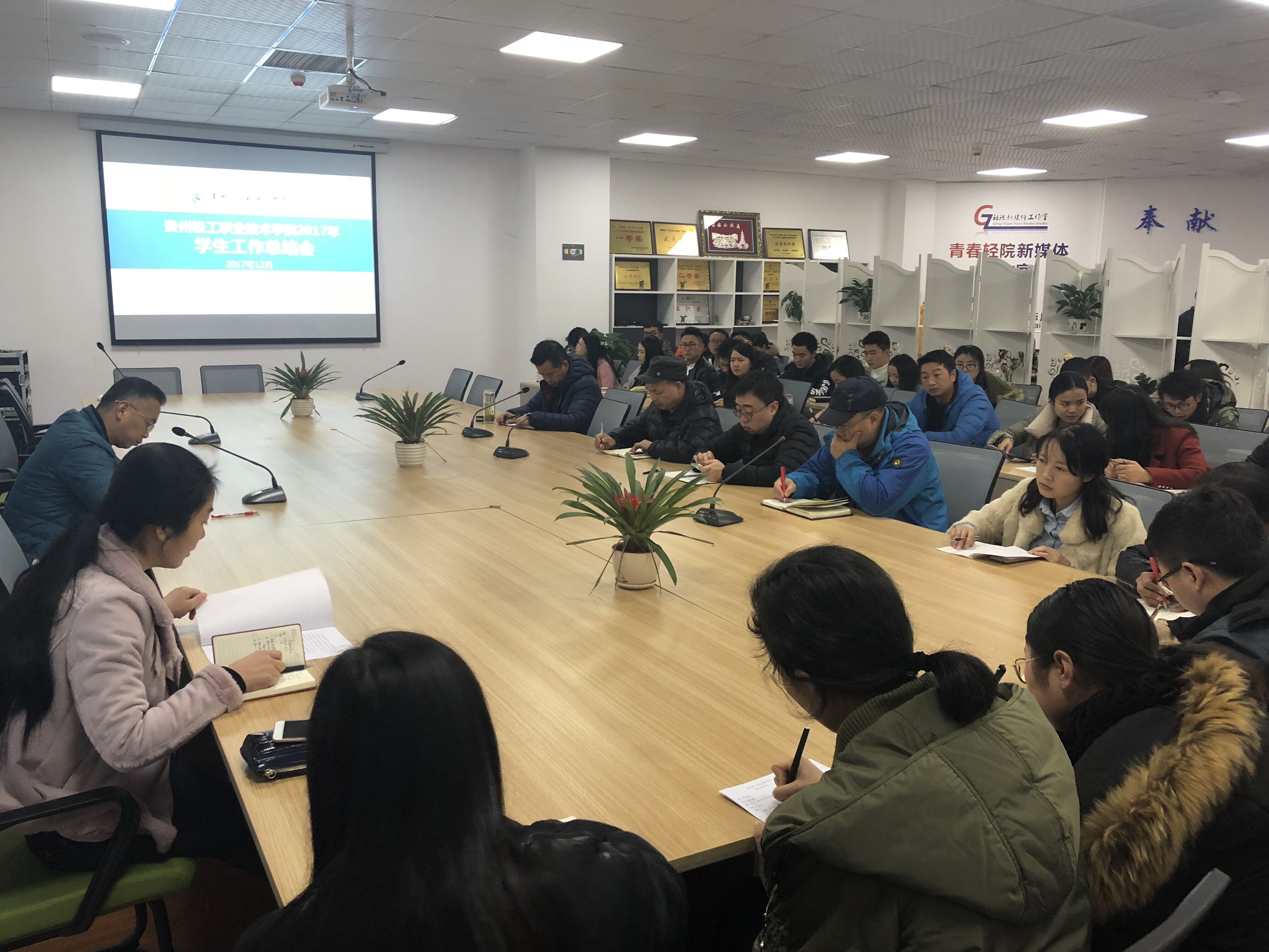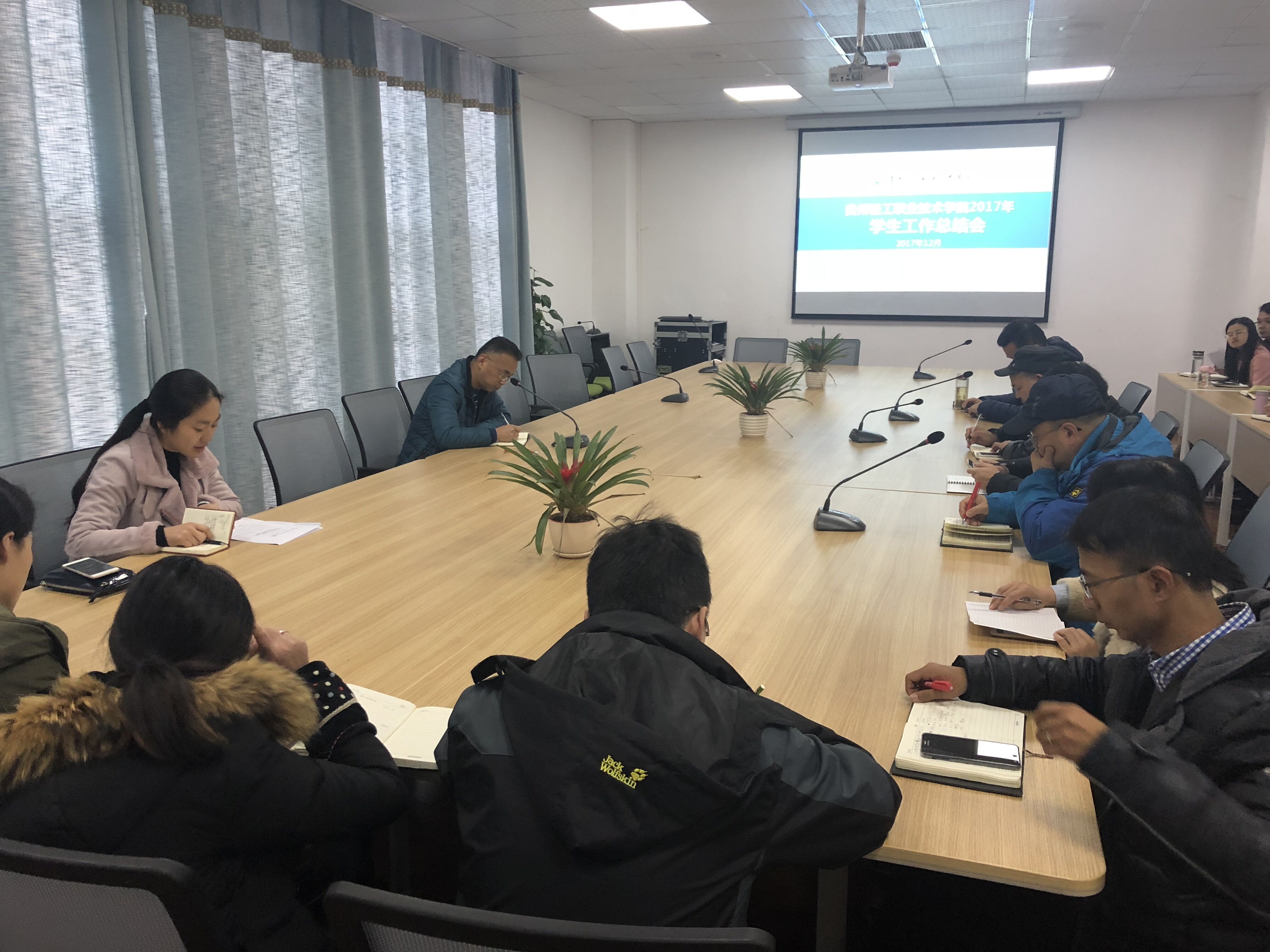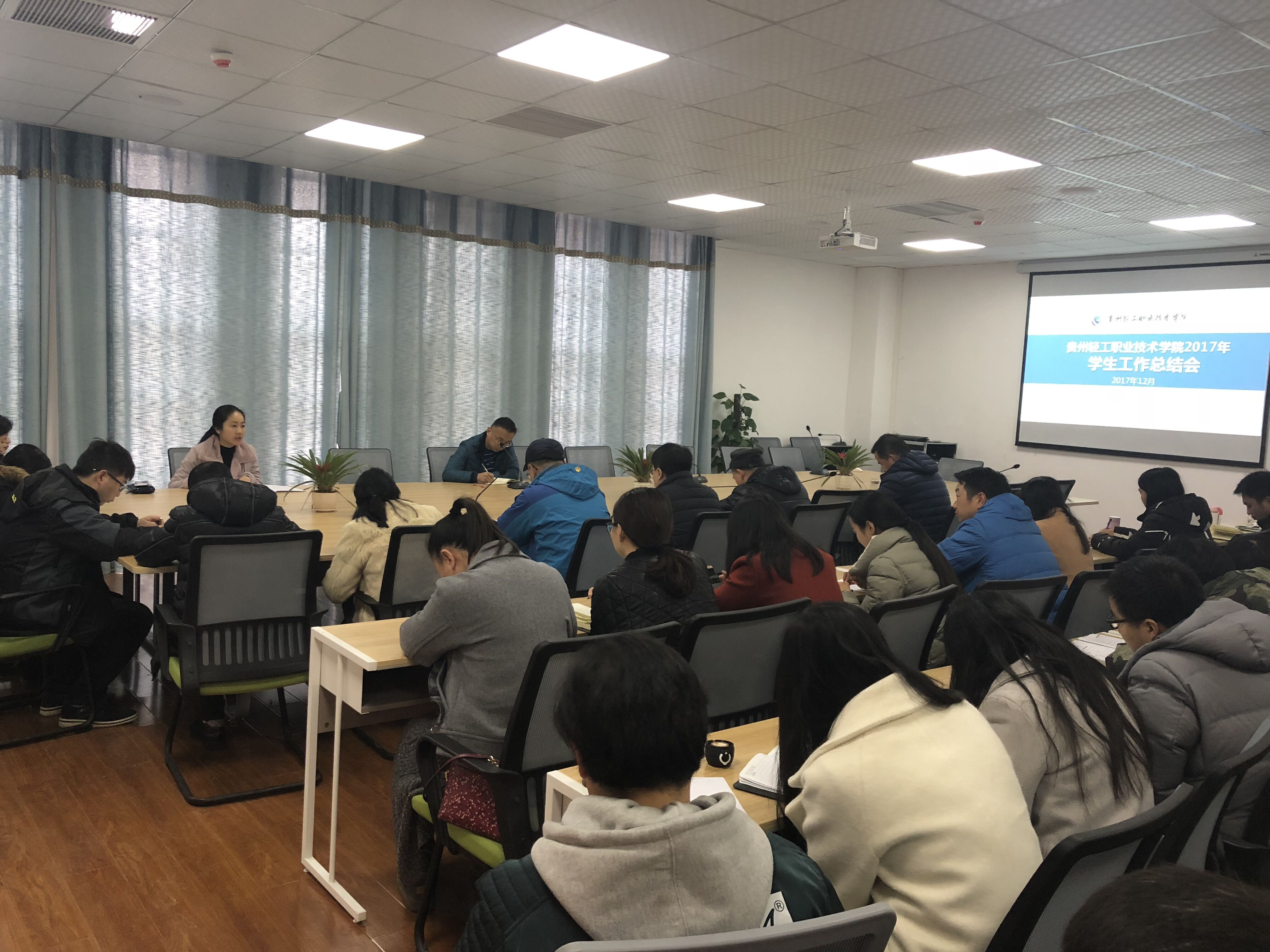 首先,学生处处长暨星球对2017年的工作进行了系统总结,重点围绕学生管理和学生文化活动两个方面,深刻剖析了2017年学生工作几个典型案例,强调要深刻反思,全面总结经验教训;通报了了各系部学风建设方面数据,强调各系要高度重视学风建设。