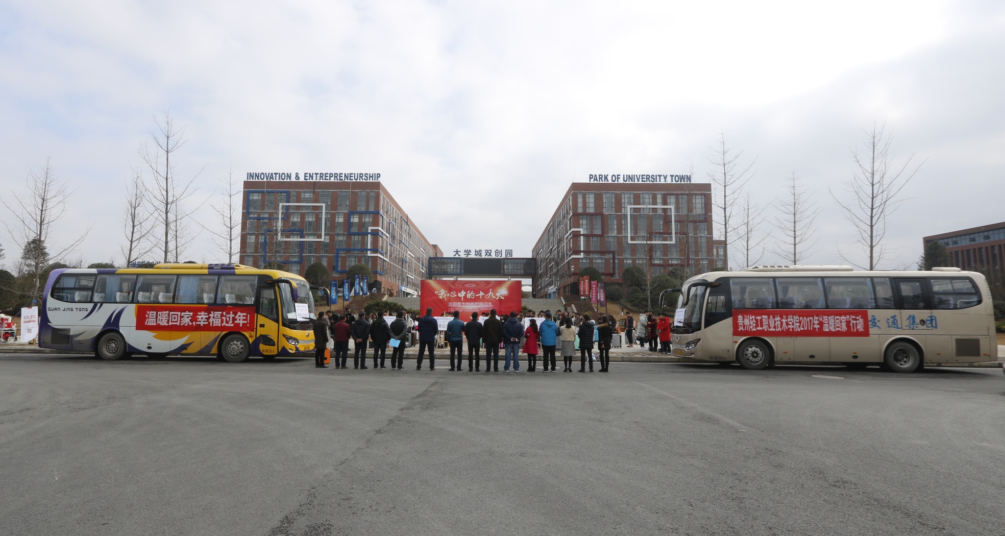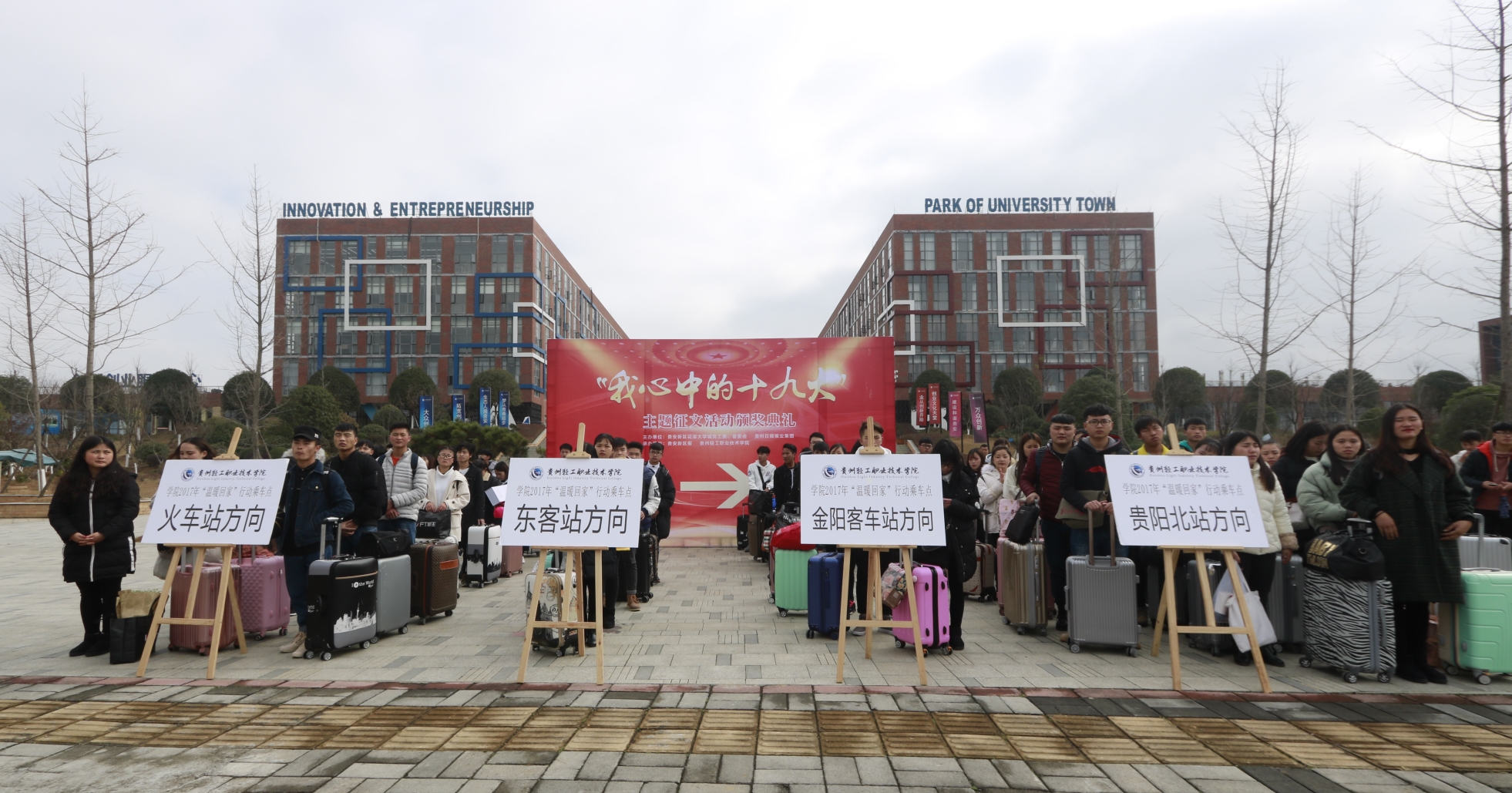 12月28日上午,学院在双创园门口开展“温暖行动”贫困学子回家“送行”活动,学院党委副书记冯其毅、杜平,副院长徐兆伯及相关部门负责同志参加活动。活动由学生工作处副处长许旺央主持。