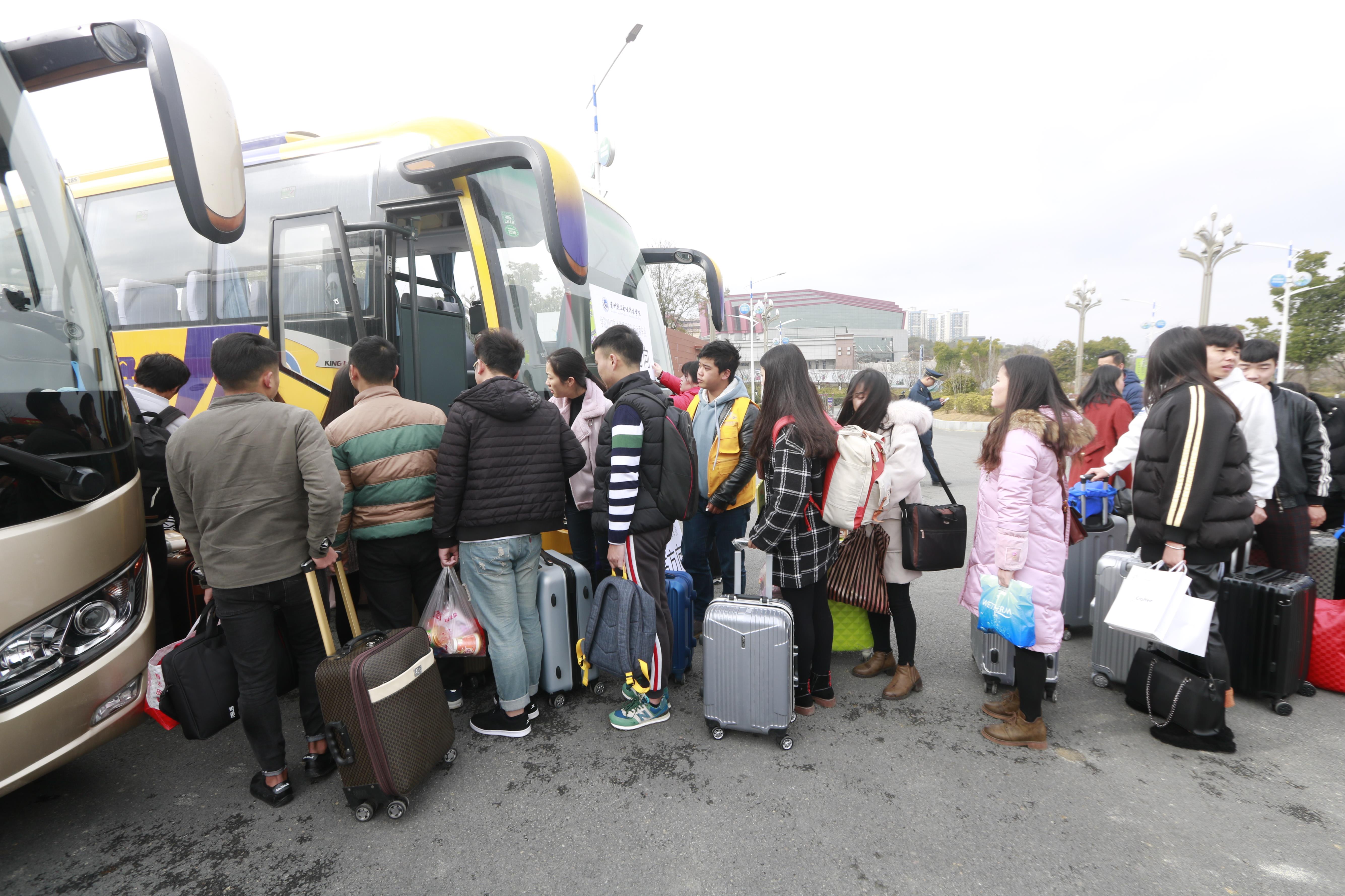 最后,学院领导和老师引导学生陆续上车,并目送大家离开。