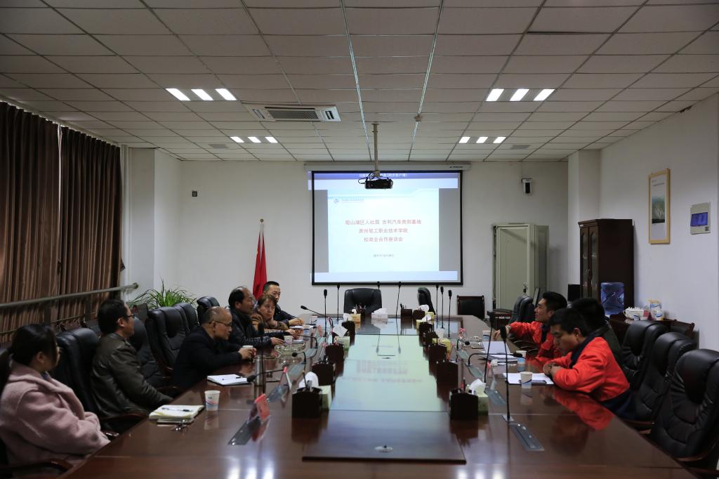 在会上,杨文通处长介绍了学院概况,张龙部长介绍了吉利贵阳基地的概况,重点与机电工程系就企业订单班、万人人才蓄水池、企业大学等问题开展了商谈,王国安主任就机电系所设专业、学生实习与其他企业开展校企合作等作了详细的介绍,欧阳全胜博士希望学院新能源电池研究平台能够参与企业相关研发工作,黄涛主任与观山湖人社局、吉利贵阳基地就社会人员、企业班组长培训、在岗人员培训合作开展了讨论。会后,与会人员到机电工程系实训基地进行了参观并就校企具体合作细节进行了协商。
