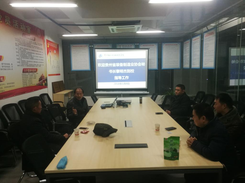 为进一步深化产教融合,加快专业教学改革,2018年1月8日,机电工程系邀请贵州省装备制造业协会秘书长黎明杰到校指导工作。学院机电工程系主任王国安、中航博亚有限公司刘宏经理一行参加会议。