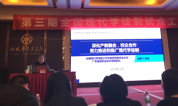赵鹏飞教授作题为《深化产教融合、校企合作,努力推进和推广现代学徒制》专题辅导