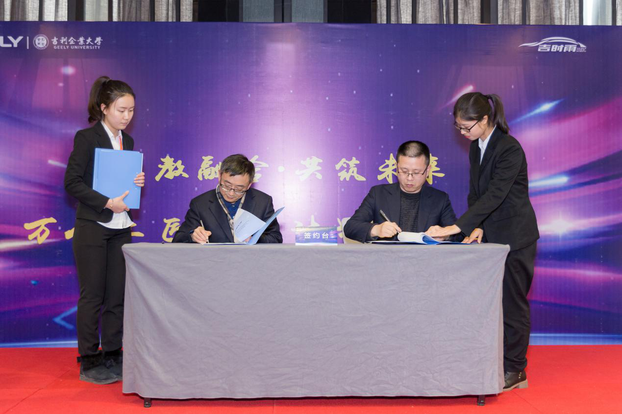 启动仪式上,周杰院长代表学院与贵州吉利新能源汽车有限公司签署了战略合作协议,使学院成为贵州吉利新能源汽车有限公司万人工匠培育基地,徐兆伯副院长代表学院接受了基地授牌。