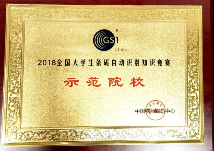 2018全国大学生条码自动识别知识竞赛示范院校 牌匾