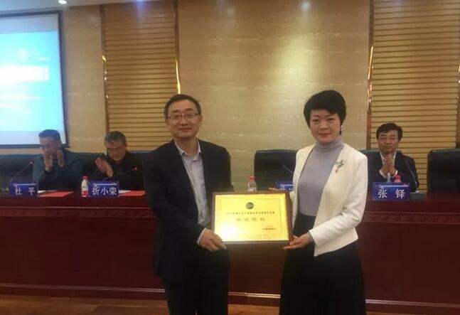 中国物品编码中心授予贵州轻工职业技术学院“2018全国大学生条码自动识别知识竞赛示范院校”牌匾。