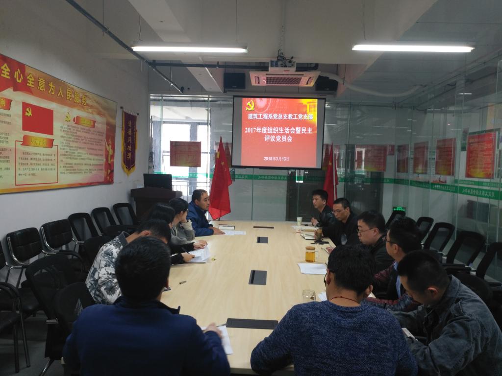 2018年3月13日下午,建筑工程系党总支教工党支部召开2017年组织生活会暨民主评议党员会。建筑工程系党总支书记李五祥同志、副主任唐芳柱同志、党总支副书记葛坤同志、以及教工党支部全体党员出席本次会议,四名教师和学生群众代表列席会议,会议由建筑工程系党总支教工党支部书记李世海同志主持。