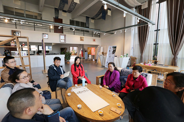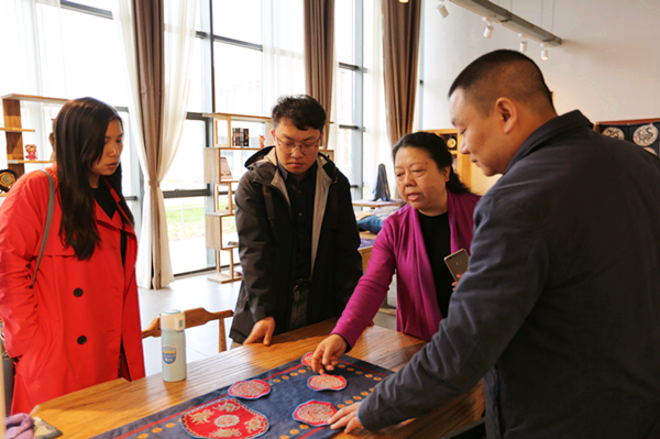 3月14日下午,省民宗委规划财务处处长蒙洪敏、文教宣传处处长黄家逊一行来学院艺术设计系考察调研,艺术设计系黄振宇主任,余太游副主任及服装教研室各位老师陪同并调研了我系民间技艺文化传承中心及黔粹行校企合作实训室。