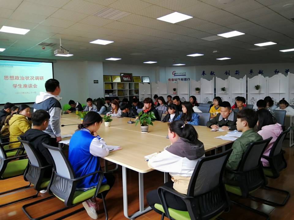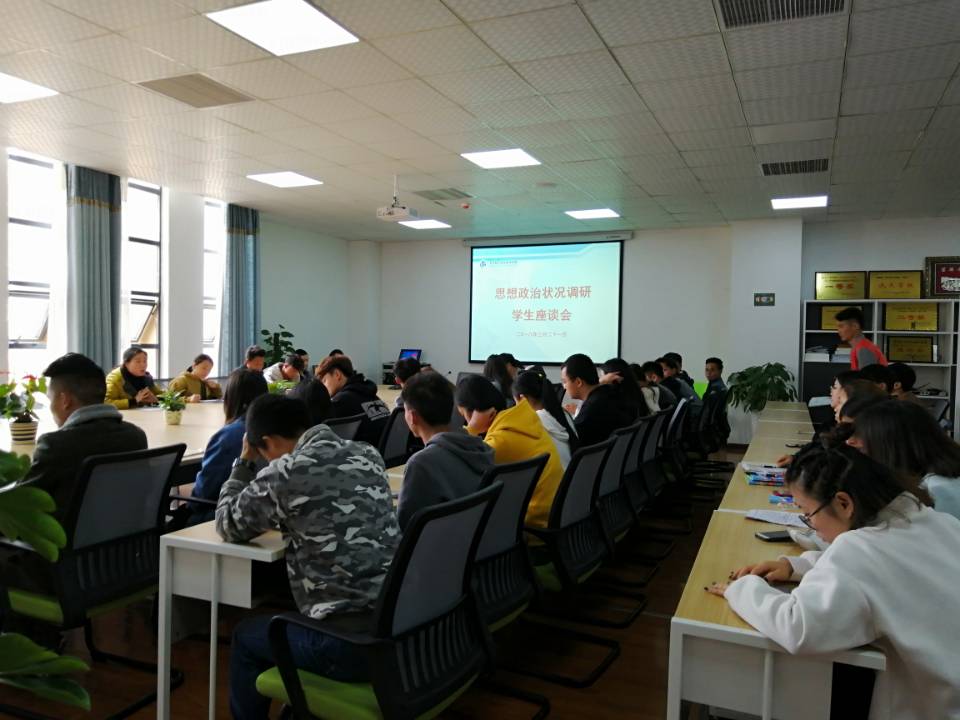 为深入贯彻习近平总书记重要讲话精神,全面贯彻全国全省高校思想政治工作会议精神,2018年3月21日上午,学生处组织召开思想政治调研学生座谈会,听取同学们对思政教育的意见建议以及十九大精神的学习体会。学生处于岚茜老师以及45名学生代表参加座谈。