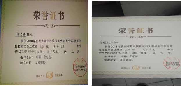 2018年3月23日-2018年3月25日,2018年贵州省职业院校技能大赛暨全国职业院校技能大赛选拔赛电子技术和信息技术2个专业类别的B组赛项在贵州电子信息职业技术学院举行。信息工程系积极参与比赛,并荣获奖项。