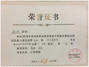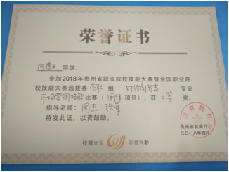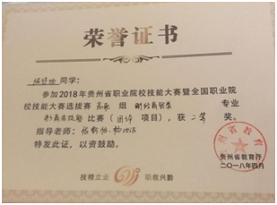 贵州省各位选手在比赛中努力拼搏,积极进取,发挥出很高的技能水平,比出了成绩,赛出了风格,交流了技艺,增进了友谊,我系各参赛队伍也取得了优异成绩:获一等奖2项、二等奖2项、三等奖1项,省级优秀指导教师10人。