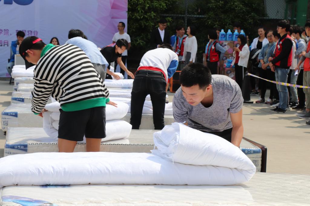 筹备已久的的宿舍文化节在寝室拔河比赛和叠被子比赛中拉开了序幕,活动前,参加活动的同学兴致勃勃的来到七号学生公寓前广场,从参赛人员脸上的表情不难看出他们对这次活动的期待及热情。