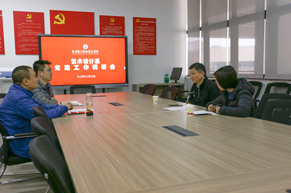 为深入贯彻落实习近平新时代中国特色社会主义思想和党的十九大精神,进一步加强学院基层党组织建设和党员队伍建设,2018年11月22日,学院党委副书记冯其毅、党委组织部部长林茜,到艺术设计系开展基层党建工作调研,我系黄振宇主任及党总支副书记余太游参加了此次调研。