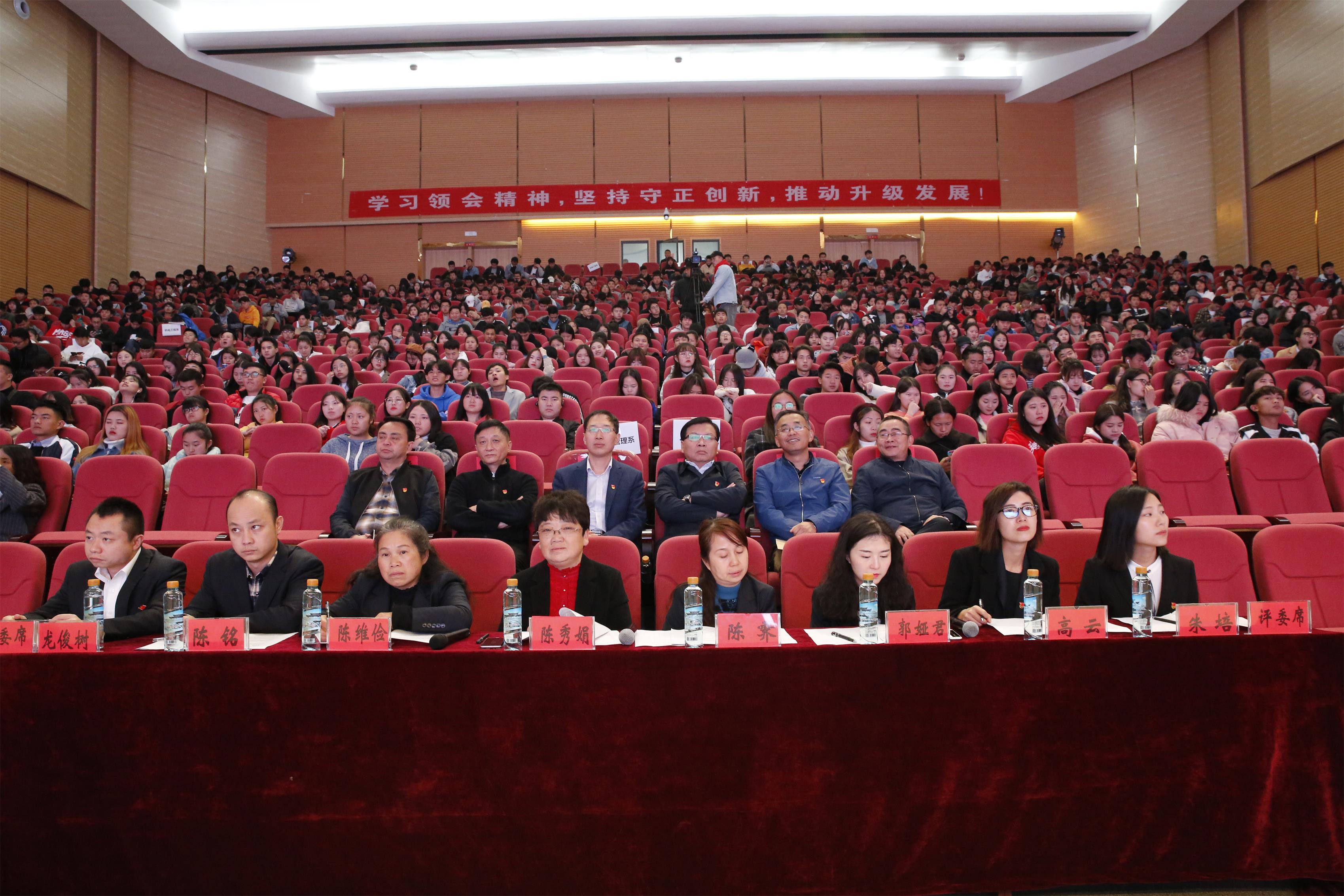 11月28日上午,学院首届“技以载道,匠心圆梦”技能素养文化活动月之“不忘初心、牢记使命”党的知识竞赛活动在学生事务中心大礼堂成功举行。学院党委书记樊铁钢,党委副书记、院长武斌儒等在校学院领导出席本次活动;各党总支教职工党员及代表学生党员、学生党员发展对象、学生入党积极分子共计1000余人现场观看比赛。