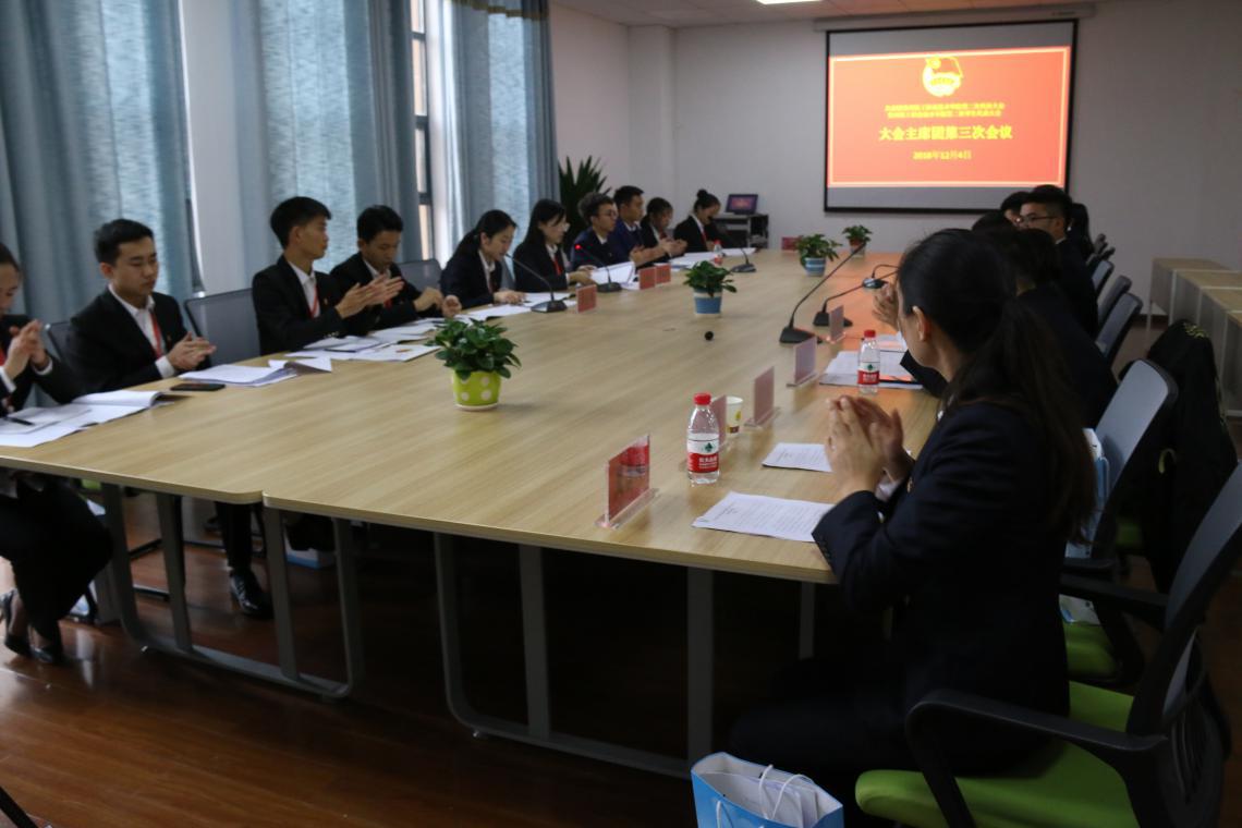 最后,第二届团委会第一次全体会议在学院学生事务中心多功能厅会议室召开,会议通过了《团委书记、副书记选举办法》,选举产生了第二届团委会书记、副书记,暨星球同志当选为共青团贵州轻工职业技术学院第二届团委书记,黄海燕、邢慧、兰亮(学生)当选共青团贵州轻工职业技术学院第二届团委副书记;。同时,第二届学生会第一次全体会议在学院学生事务中心第二报告厅召开,会议通过了《学生会主席、副主席选举办法》,选举产生了第二届学生委员会主席、副主席,兰亮当选第二届学生委员会主席,彭鑫、程曾倩、毛诗瑶、李帆、杨来宝、王俊宏当选为第二届学生委员会副主席。