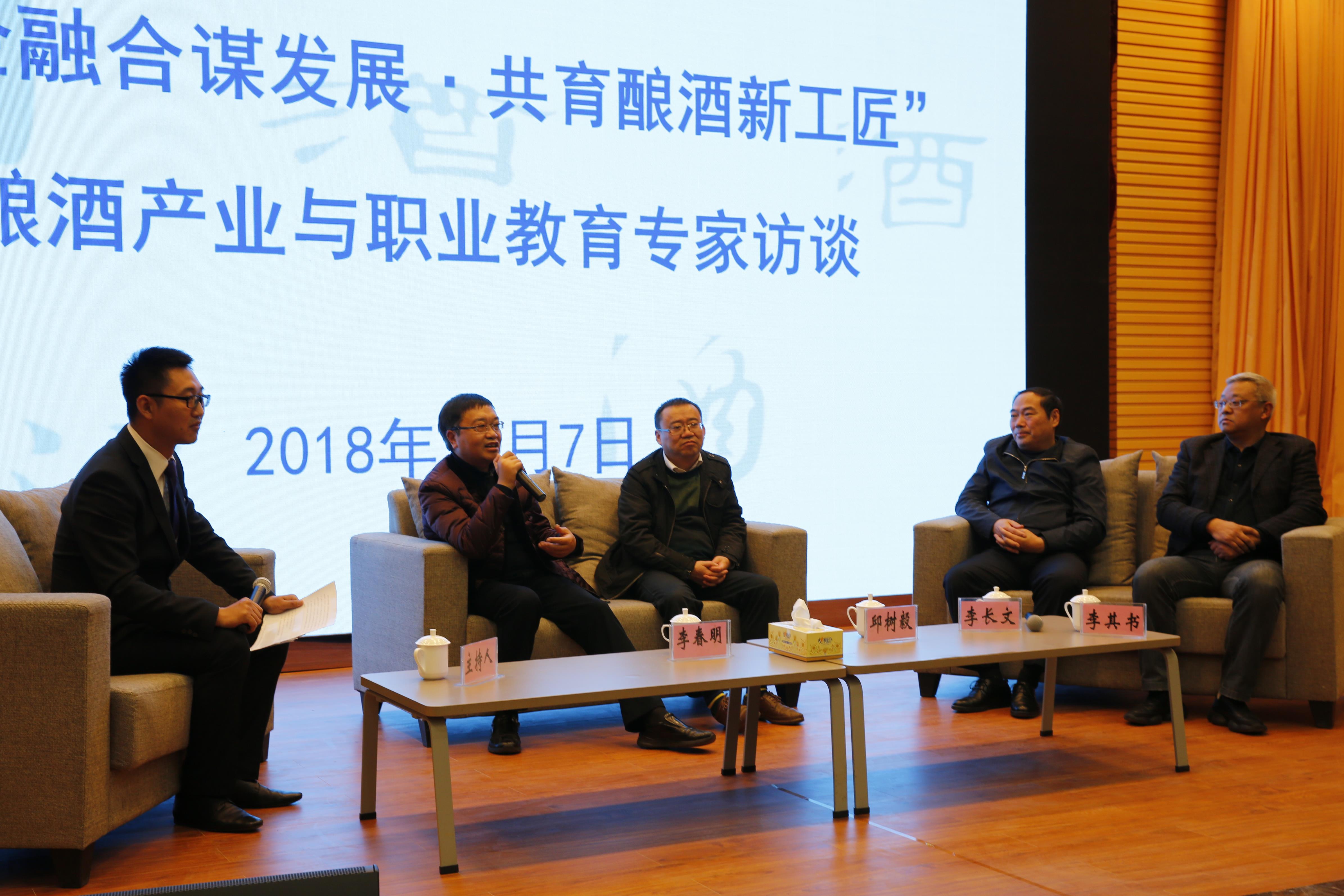 12月7日下午,“校企携手谋融合·共育酿酒新工匠”酿酒产业与职业教育发展论坛在学院图书馆报告厅举行,贵州大学酿酒与食品工程学院院长邱树毅作《贵州白酒产业人才培养思考——在贵州轻工职业技术学院的发言》。李春明、李长文、李其书等专家、嘉宾围绕校企产教融合、酿酒人才培养等问题展开深入交流和专家访谈。