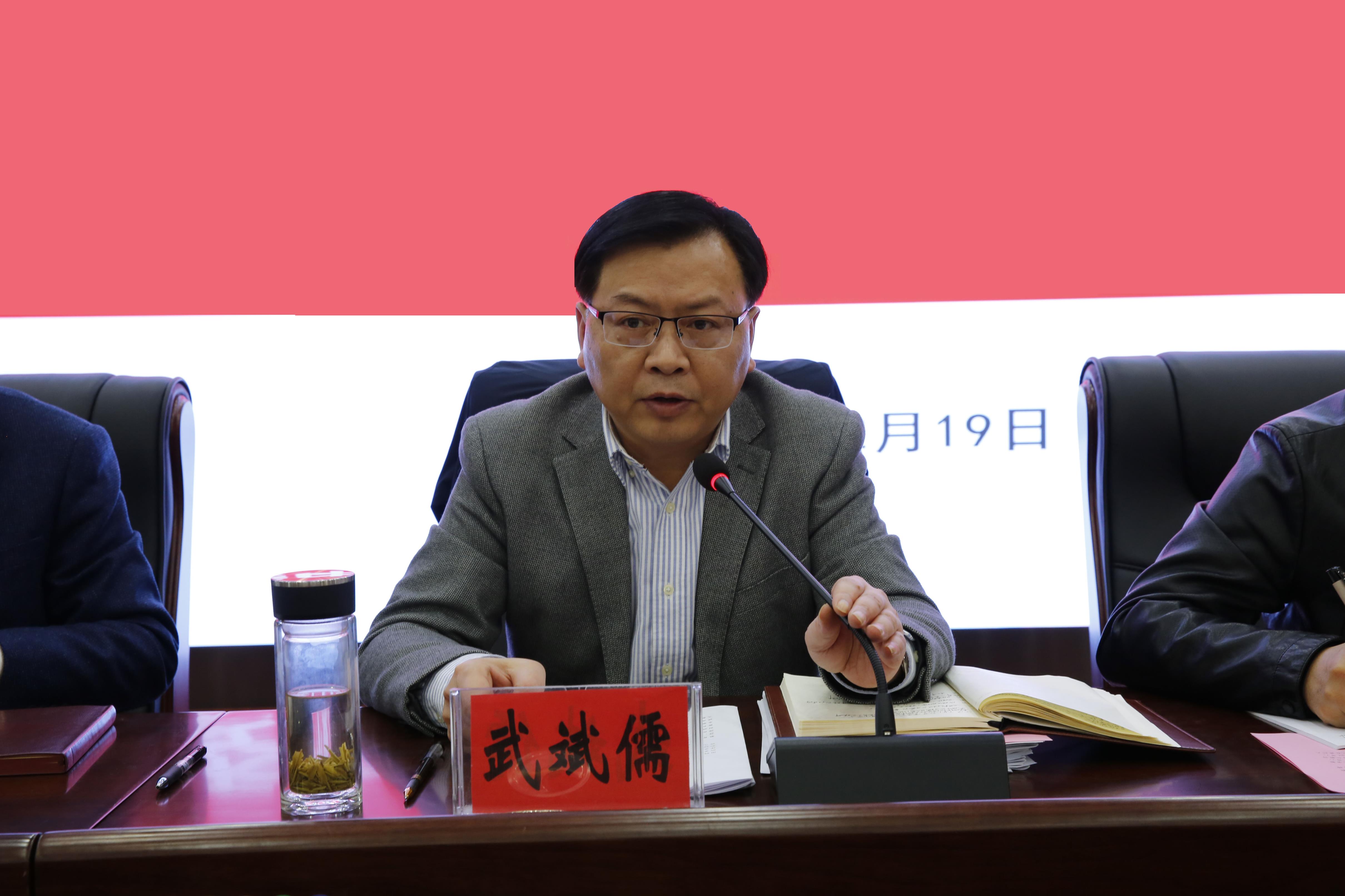 党委副书记、院长武斌儒在讲话中引用习近平总书记在改革开放40周年大会上讲话中的一段话来勉励大家再接再励:“古人说:‘事者,生于虑,成于务,失于傲。’伟大梦想不是等得来、喊得来的,而是拼出来、干出来的。我们现在所处的,是一个船到中流浪更急、人到半山路更陡的时候,是一个愈进愈难、愈进愈险而又不进则退、非进不可的时候。改革开放已走过千山万水,但仍需跋山涉水,摆在全党全国各族人民面前的使命更光荣、任务更艰巨、挑战更严峻、工作更伟大。在这个千帆竞发、百舸争流的时代,我们绝不能有半点骄傲自满、固步自封,也绝不能有丝毫犹豫不决、徘徊彷徨,必须统揽伟大斗争、伟大工程、伟大事业、伟大梦想,勇立潮头、奋勇搏击。”他指出,虽然学院近年来取得了很大的发展成就,但我们要始终树立激流勇进的意识,尤其是在升级版轻院的建设过程中,要始终绷紧不进则退这根弦。