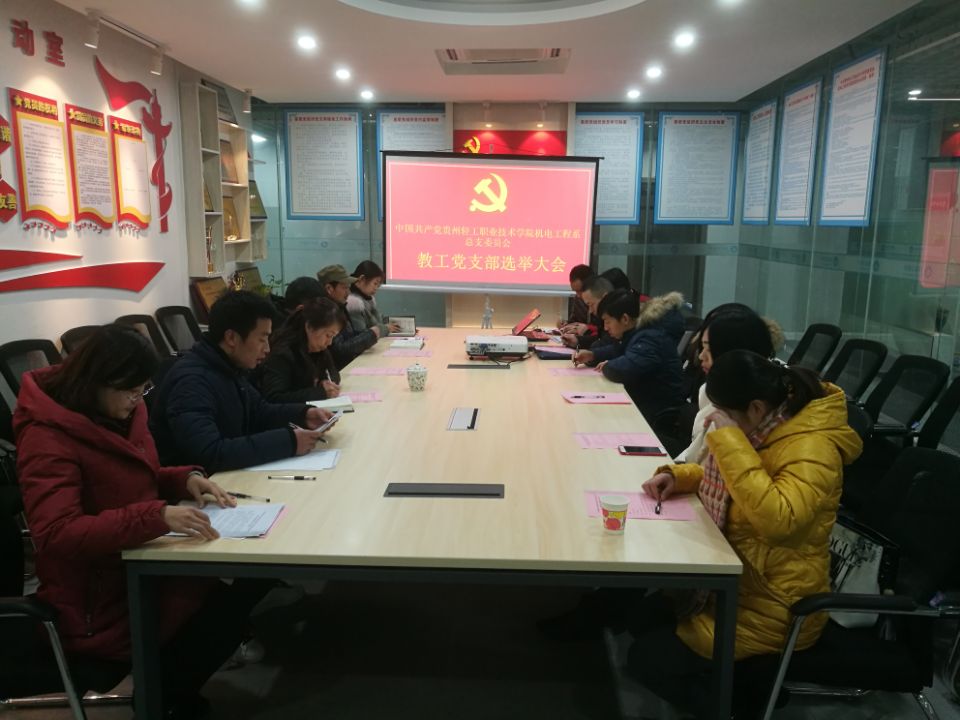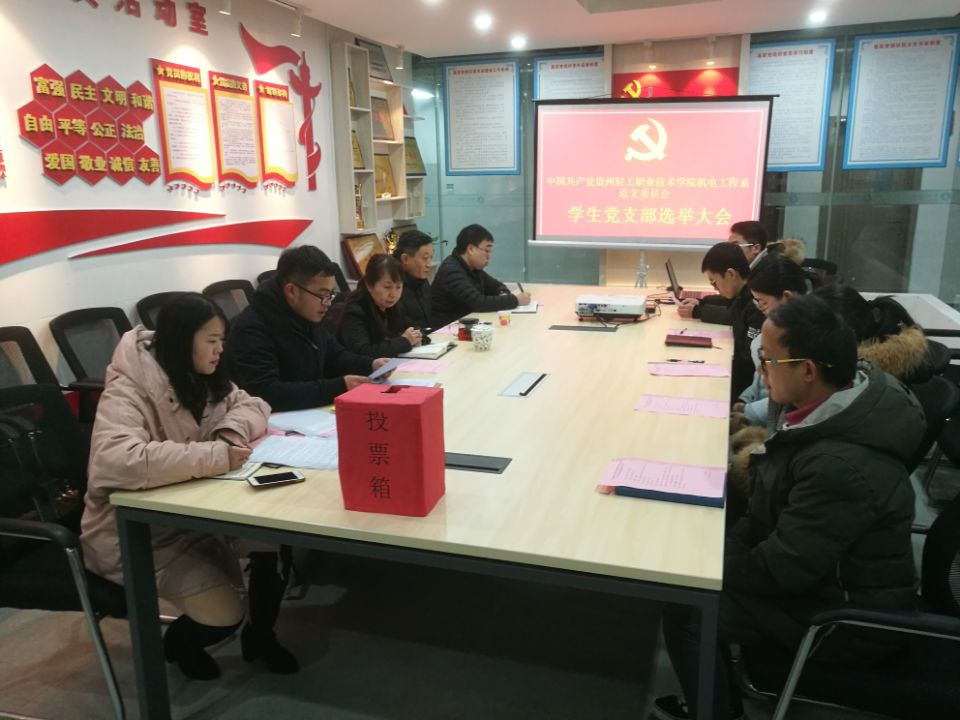 为切实加强基层党组织建设,更好地发挥党组织的作用,根据《中国共产党章程》、《中国共产党基层组织选举工作暂行条例》、《中国共产党支部工作条例(试行)》有关规定和《关于印发〔中共贵州轻工职业技术学院委员会2018年支部委员换届选举工作方案〕的通知》黔轻职院党〔2018〕89号文件有关要求,机电工程系教工党支部和学生党支部于2018年12月29日在系部会议室分别完成了换届选举工作。学院党委副书冯其毅同志到会并进行指导。