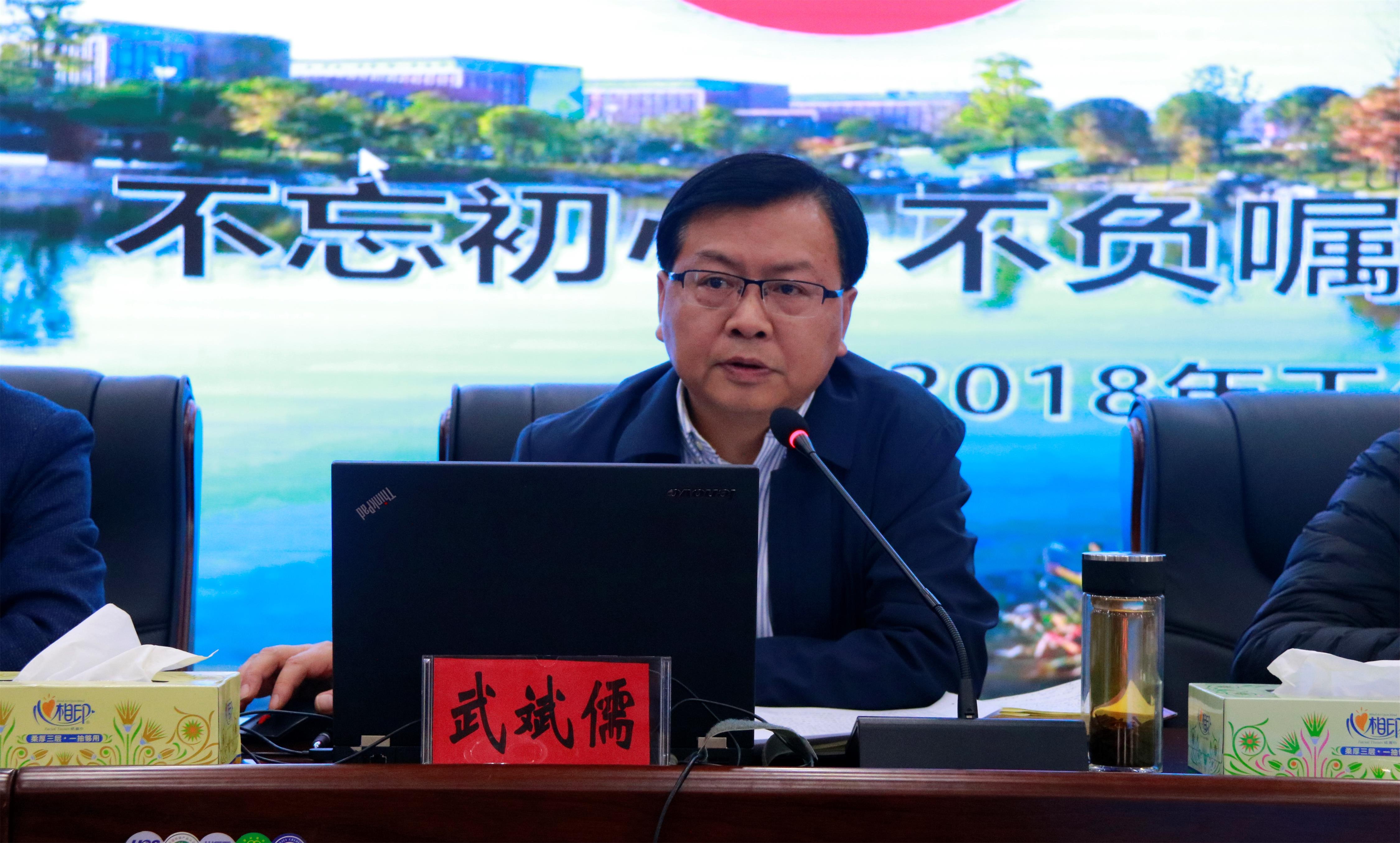 会上,武斌儒同志作了“抢抓时代机遇,全面推动提质升级”的主题报告。他总结回顾了学院2018年的发展成绩,重点解读了《国家职业教育改革实施方案》,系统分析了学院教育、教学改革面临的新机遇和新挑战。