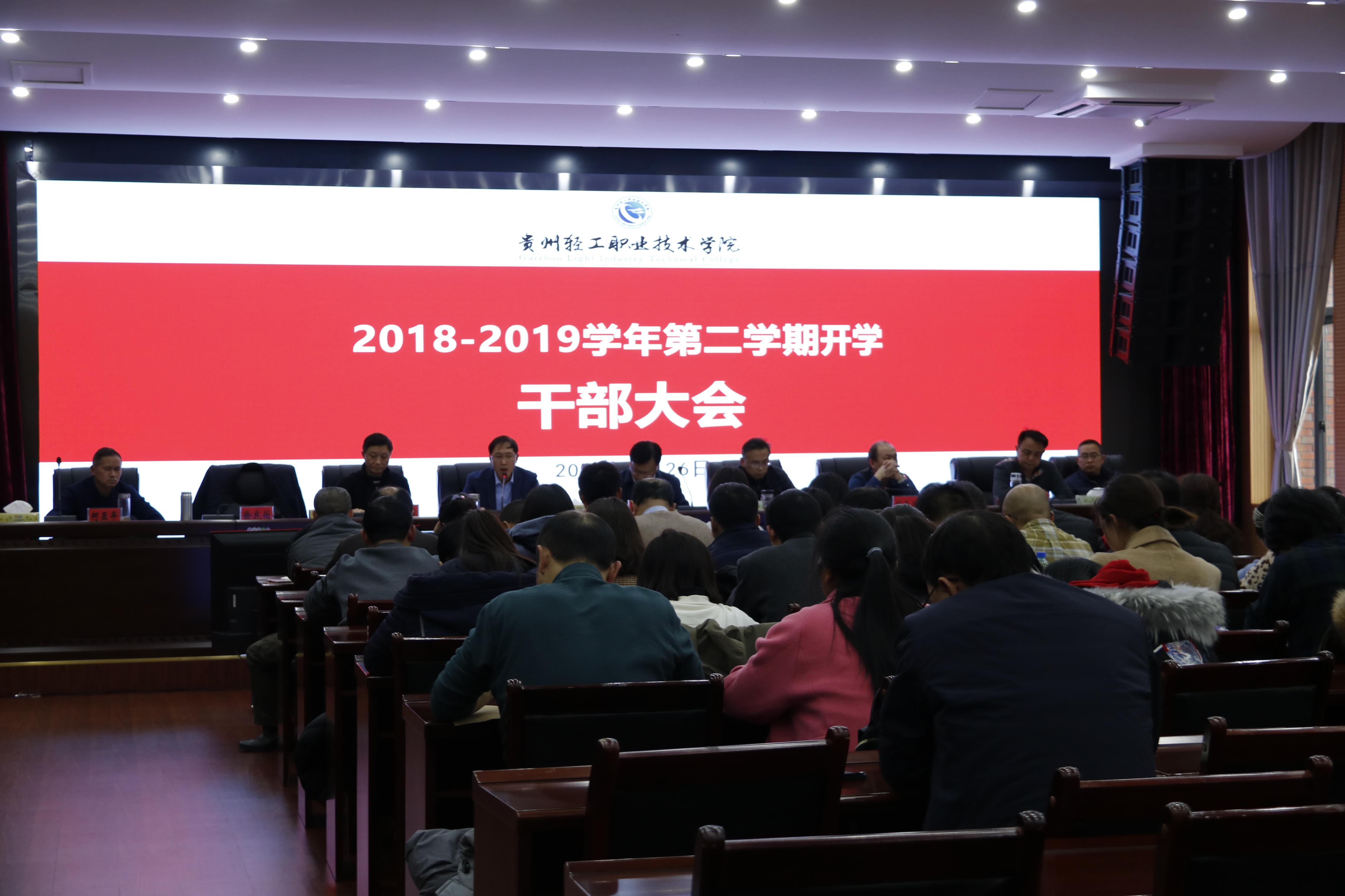 2月26日,学院在行政楼第三会议室召开2018-2019学年第二学期干部大会。党委书记樊铁钢,党委副书记、院长武斌儒及院领导班子全体成员,在校全体中层干部、副科级干部参加会议。