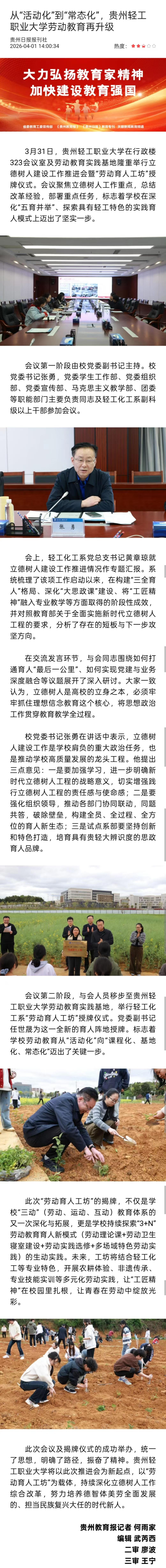 下一篇:班集体建设有妙招!贵州轻工职业大学探索“54321”班主任工作模式