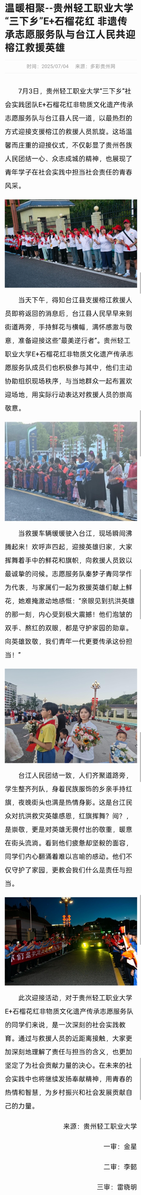 温暖相聚--贵州轻工职业大学“三下乡”E+石榴花红 非遗传承志愿服务队与台江人民共迎榕江救援英雄