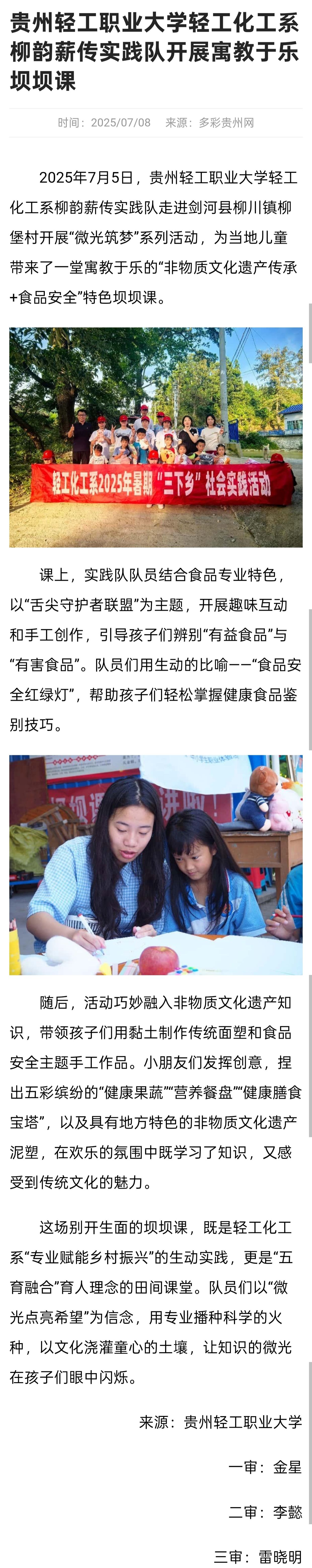 上一篇:贵州轻工职业大学E +石榴花红非遗志愿队深耕方黎湾社区赋能“两清...