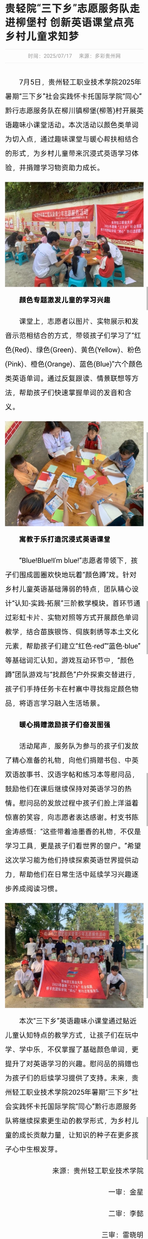 上一篇:贵州轻工职业大学E+石榴花红志愿服务队走进红阳苗寨奏响文化传承...