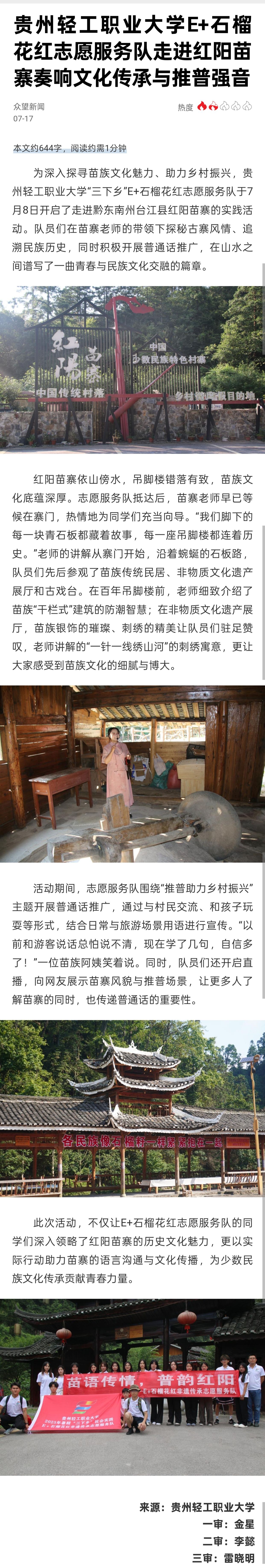 下一篇:贵州轻工职业大学E +石榴花红非遗志愿队深耕方黎湾社区 赋能“两...