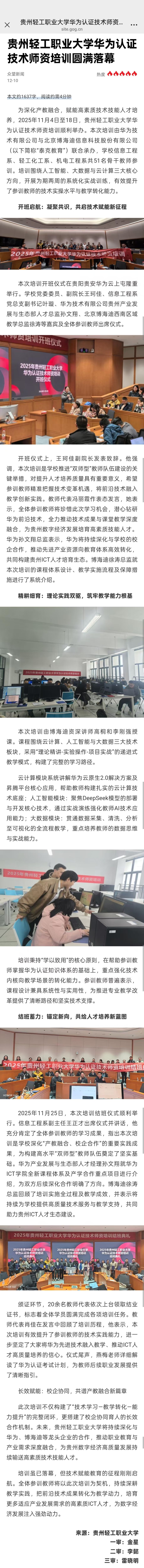 贵州轻工职业大学华为认证技术师资培训圆满落幕