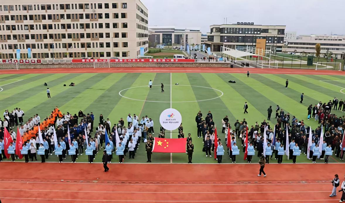 11月1日上午,贵州轻工职业大学田径场内气氛热烈、彩旗飘扬,2025年“杏坛杯”教职工运动会在此隆重开幕。