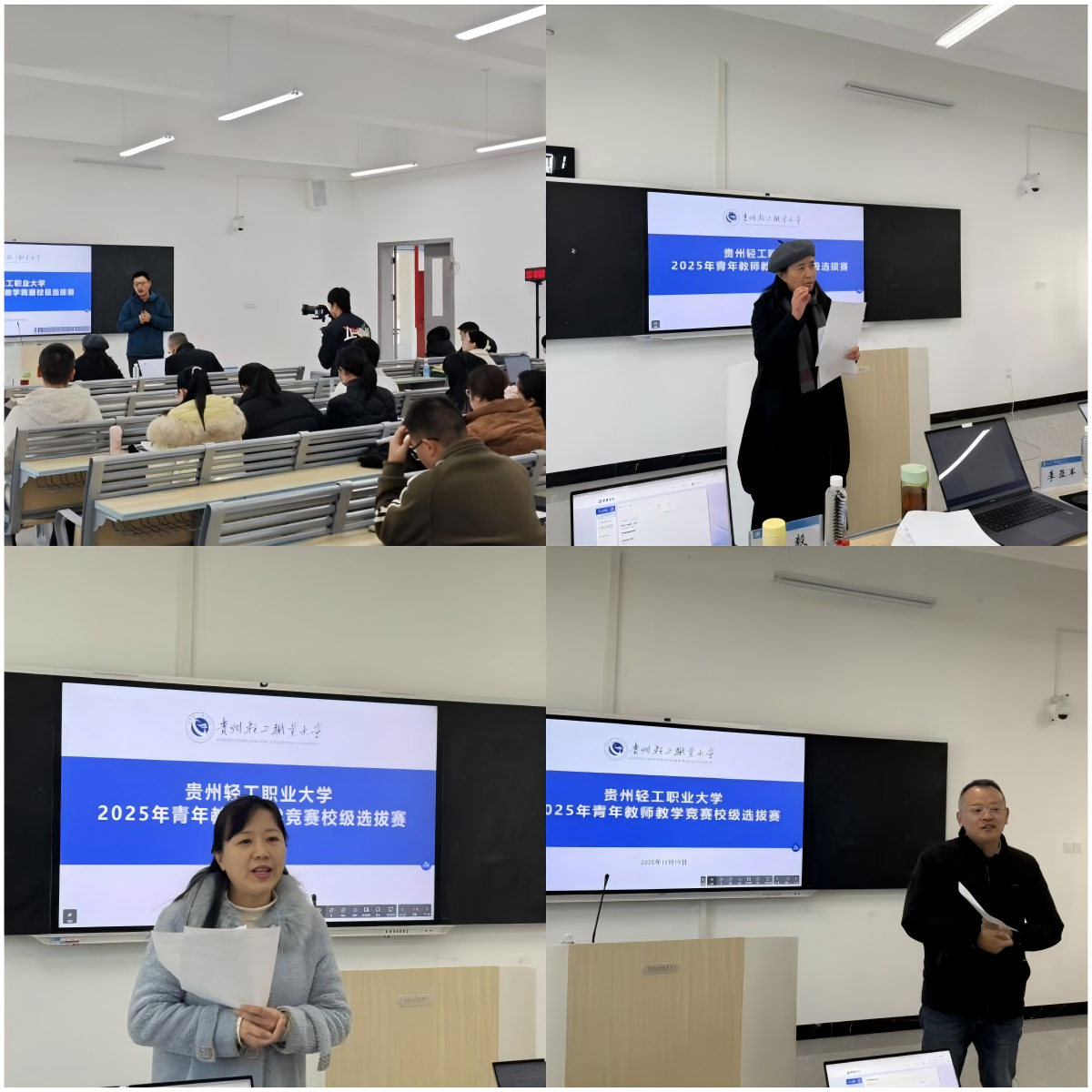 为深入推进教育教学改革,提升教师队伍专业素养和教学能力,学校于2025年11月19日至20日举行了首届“技以载道,匠心圆梦”技能素养文化活动月系列教学竞赛。本次竞赛涵盖了“青年教师教学竞赛”院级选拔赛、第一届职业本科教学“说课”活动及“职业技能大赛教学能力比赛”院级选拔赛三大板块,旨在激发教师的教学热情,促进教学经验交流,营造浓厚的教学研究氛围。“青年教师教学竞赛”院级选拔赛开赛“青年教师教学竞赛”院级选拔赛于11月19日上午在善思楼114举行。竞赛特别邀请到贵州师范大学黎阳、卓毅、李亚军三名知名专家担任本次比赛的评委,为参赛教师的授课表现进行专业点评与指导。