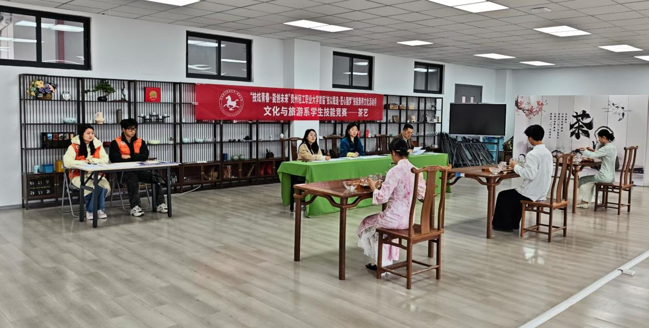 2025年11月,贵州轻工职业大学文化与旅游系成功举办“技以载道·匠心圆梦”技能素养文化活动月系列竞赛。活动以“以赛促学、以赛促教、以赛促用、以赛促练、以赛促选”为宗旨,设有茶艺、导游服务、酒水服务与酒店服务四大特色赛项。自10月26日启动报名以来,共吸引200余名师生积极参与。历经15天的赛前训练与筹备,赛事于11月20日正式展开,经过连续6天的激烈角逐,各项竞赛圆满完成。