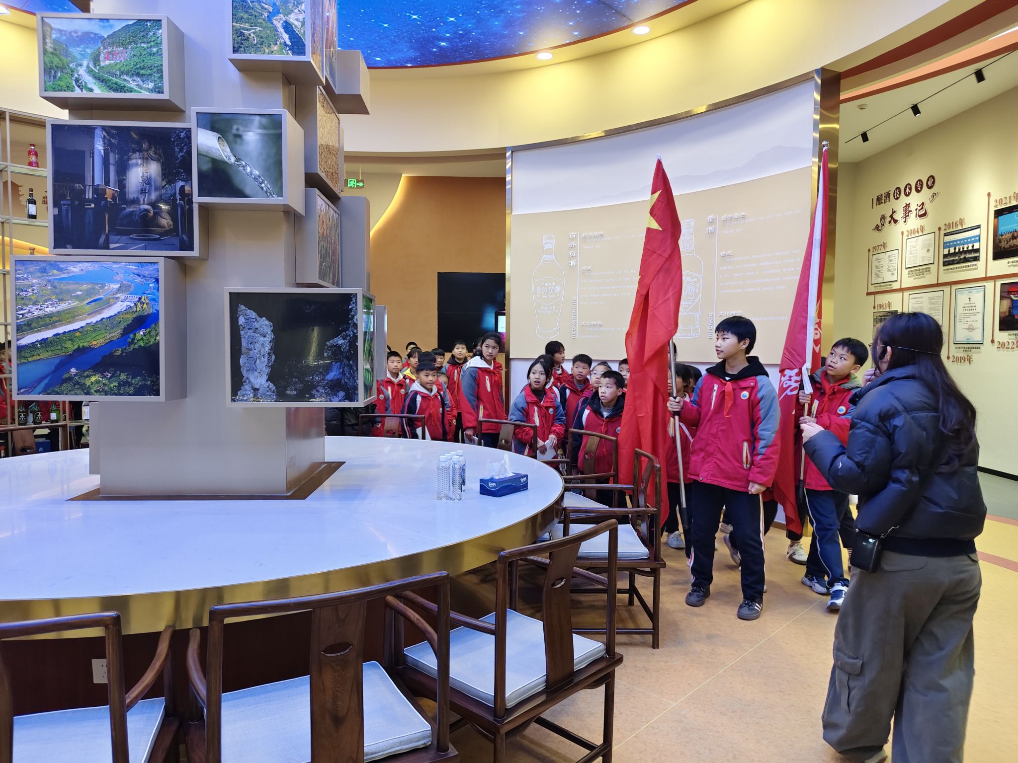 在黔酿技艺研学馆,前来研学的孩子们在专业教师指导下,近距离感受传统酿造技艺的奥秘与现代传承,体会精益求精的工匠内核。馆内陈设的古老器具与酿酒工艺流程图,生动诠释了“工匠精神”在传统与现代维度上的传承与创新。