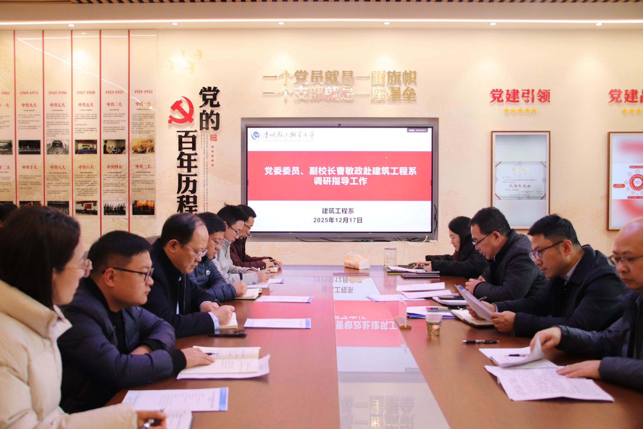 2025年12月17日,学校副校长曹敏政深入建筑工程系调研指导工作。建筑工程系党政领导班子、工程师工坊负责人、高层次人才等参加调研座谈,会议由系部党总支书记龙金昌主持。