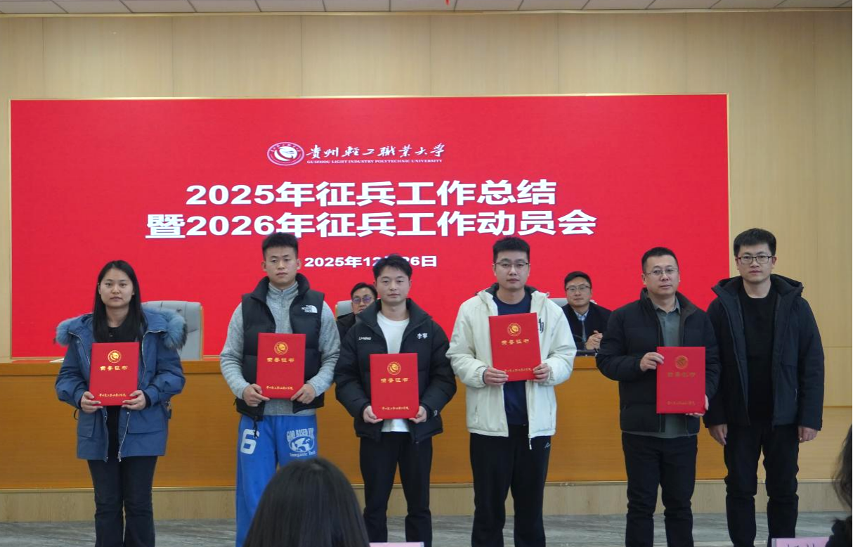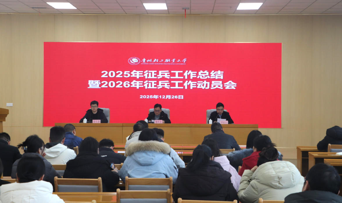 12月26日,学校在知行楼321会议室召开2025年征兵工作总结暨2026年征兵工作动员会。学校党委副书记、校长杨天仪出席并讲话,党委委员、副校长曹敏政主持会议,党委委员、党委宣传部部长、党委办公室、学校办公室主任余太游出席会议,相关职能部门、各院系负责人及辅导员代表参加会议。