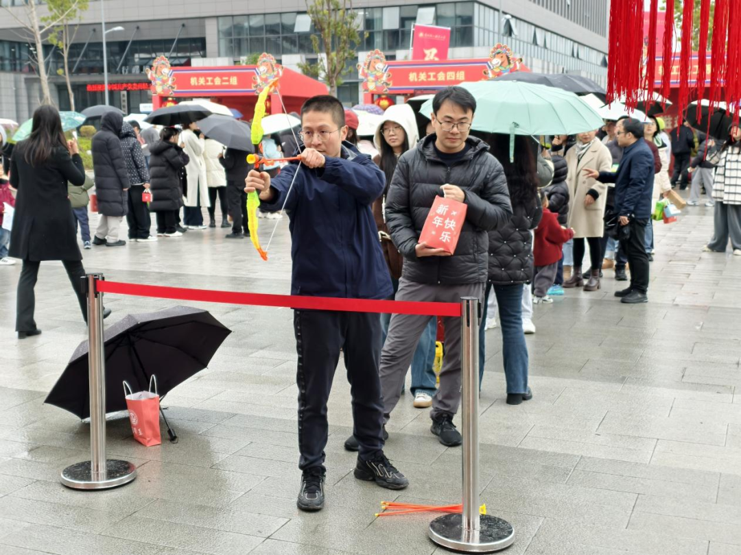 联谊会正式开始之前,各工会小组开展了教职工游园活动,游园活动共设 11 个项目,打糍粑、写春联、投壶、年画拓印等活动,每一个都充满趣味性和挑战性。不仅极大地丰富了学校教职工的业余文化生活,增进了教职工间的交流与合作。同时,也让大家在繁忙的工作之余找到乐趣,为校园生活增添了一份温馨与和谐。