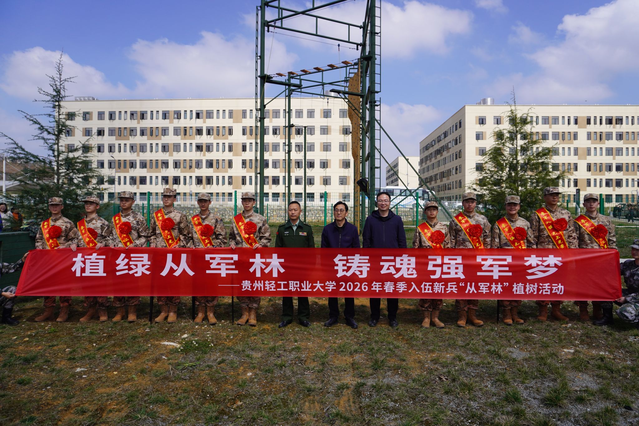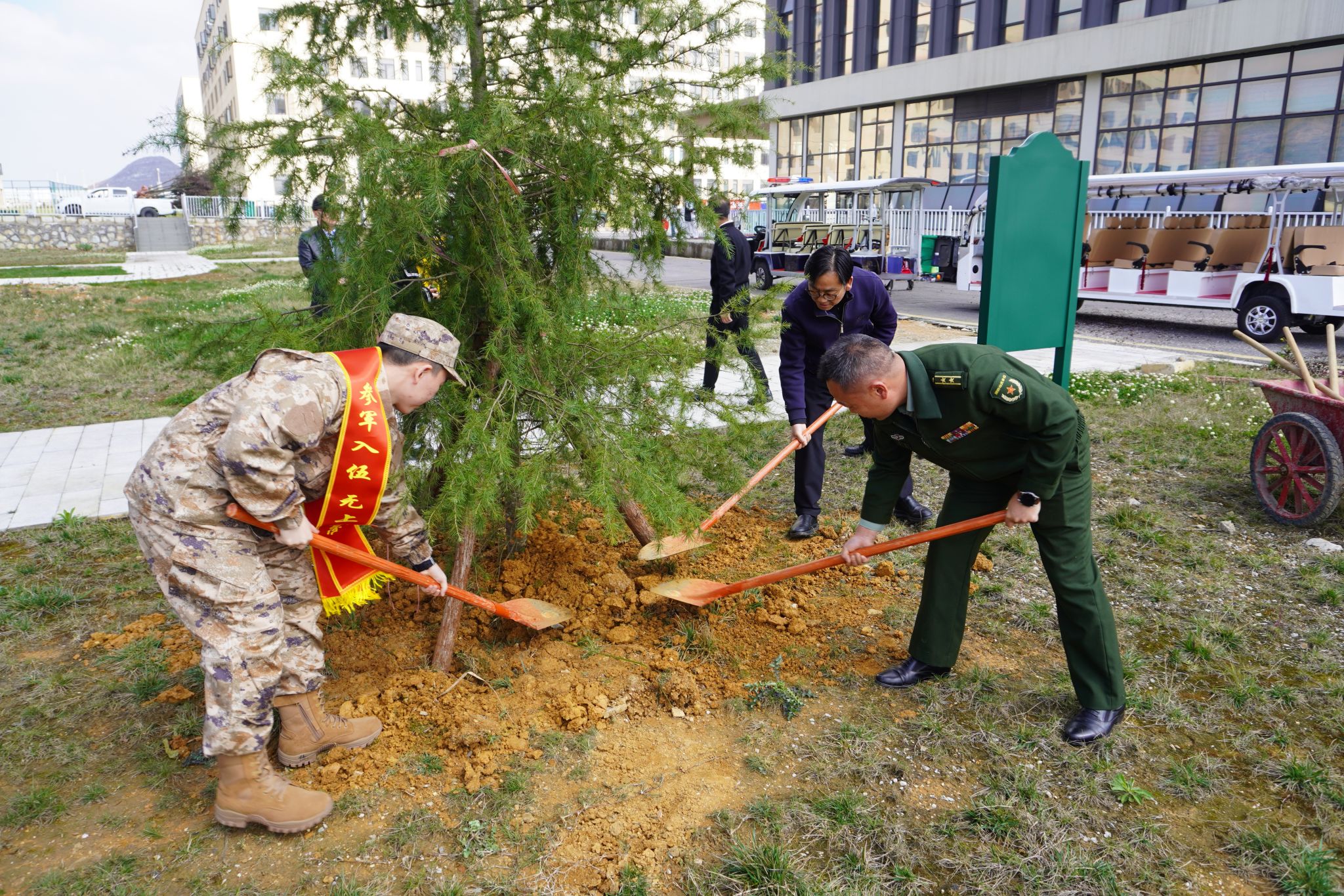 欢送会结束后,学校领导、嘉宾、入伍新兵代表及学生家长一同前往学校“从军林”,挥锹铲土、扶苗浇水,共同栽种下一棵“从军树”,厚植家国情怀,涵养爱国之心,砥砺强国之志,力践报国之行。