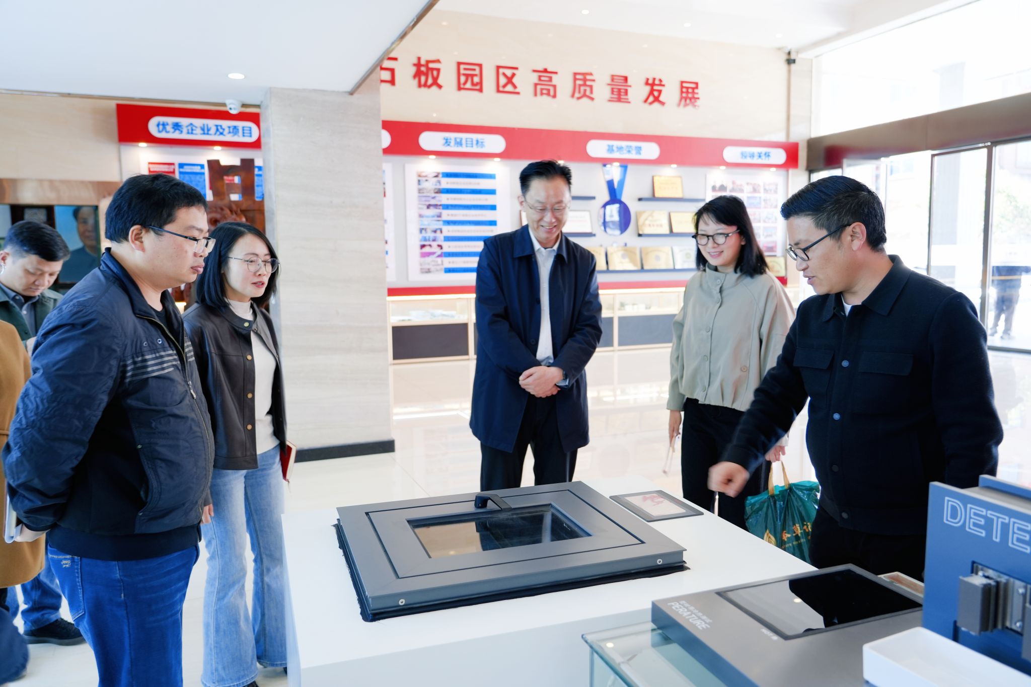 张勇一行在园区商会副秘书长吴汉陪同下参观商会展厅,全面了解园区发展历程、产业布局与人才需求,强调学校将紧贴区域产业发展,优化专业设置与人才培养方案。随后,一行人实地走访园区龙头企业亿隆集团,查看企业展厅与直播工作室,深入了解企业规模、核心业务及岗位需求,校企双方就实习实训、人才培养等内容开展初步交流。