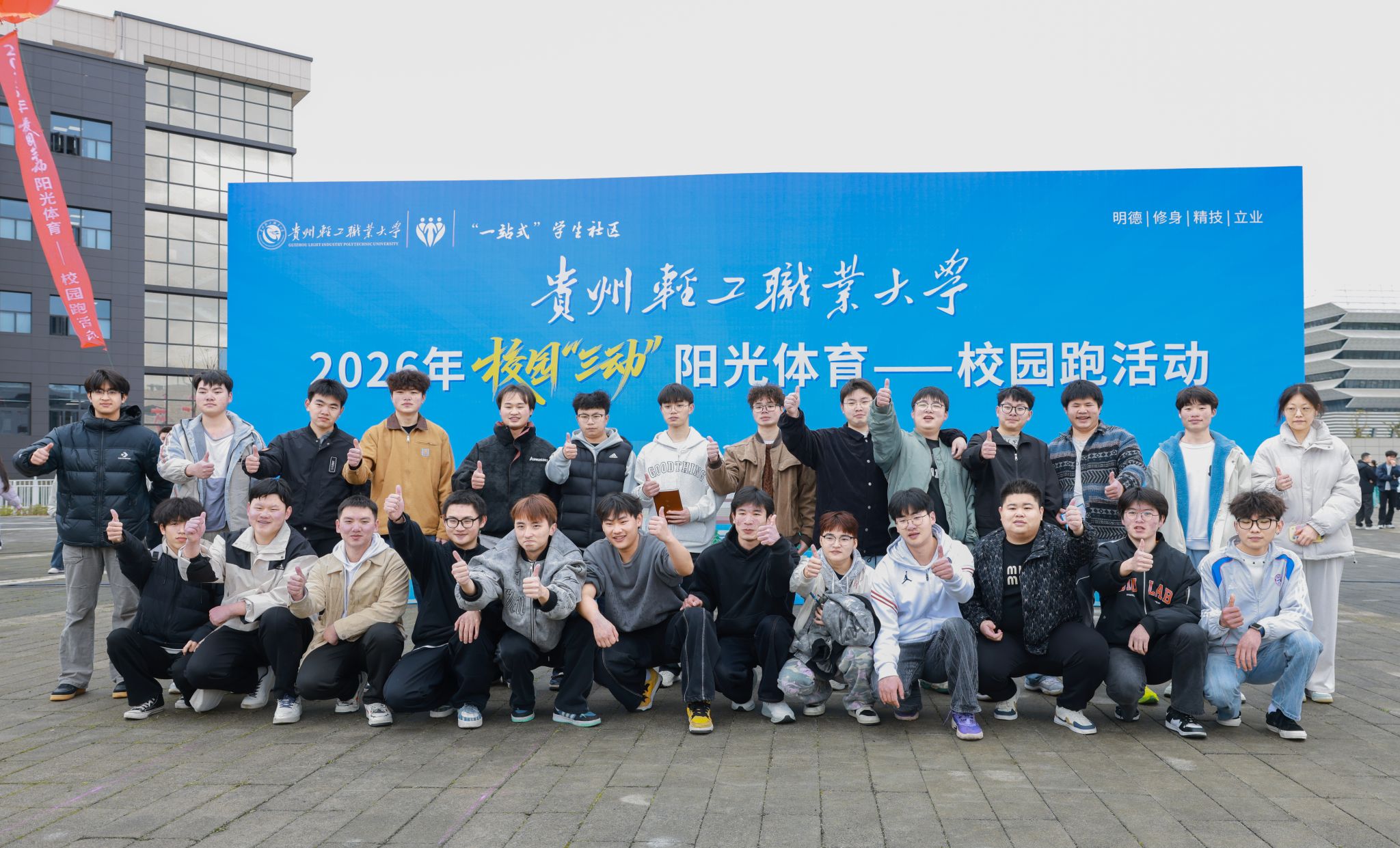 3月24日上午,贵州轻工职业大学2026年校园“三动”阳光体育校园跑活动在溯源广场正式启动。学校党委书记张勇,党委副书记、校长杨天仪等全体党委委员出席活动,各职能部门负责人、教职工代表、各教学单位教工团队及1000余名学生参加。