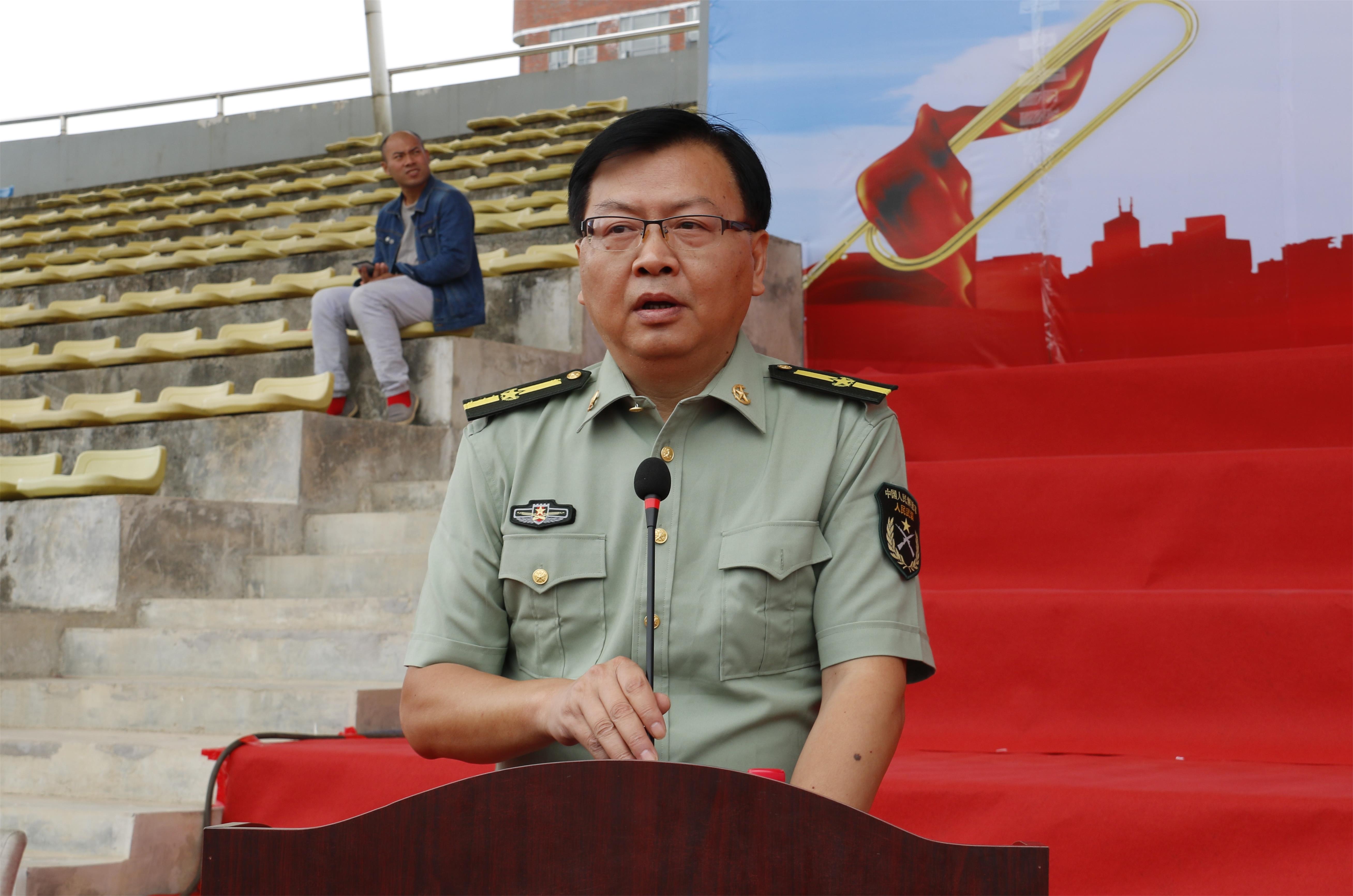 学院党委副书记、院长、军训团团长武斌儒同志讲话。他首先代表学院党委、行政、全体师生员工向2018级4000名新同学加入轻院大家庭表示最热烈的欢迎!同时,他嘱托同学们要珍惜时间、珍惜机遇、珍惜缘分,融入知识、融入技能、融入时代,以文化浸润技术,用理想托起技能,开创出自己的精彩人生,并祝愿同学们在贵州轻工学有所成,在大学三年中用坚毅、刻苦、诚实、勇敢记录奋斗的足迹,用爱、阳光、积极来拥抱生活,实现匠心圆梦,技能成材!